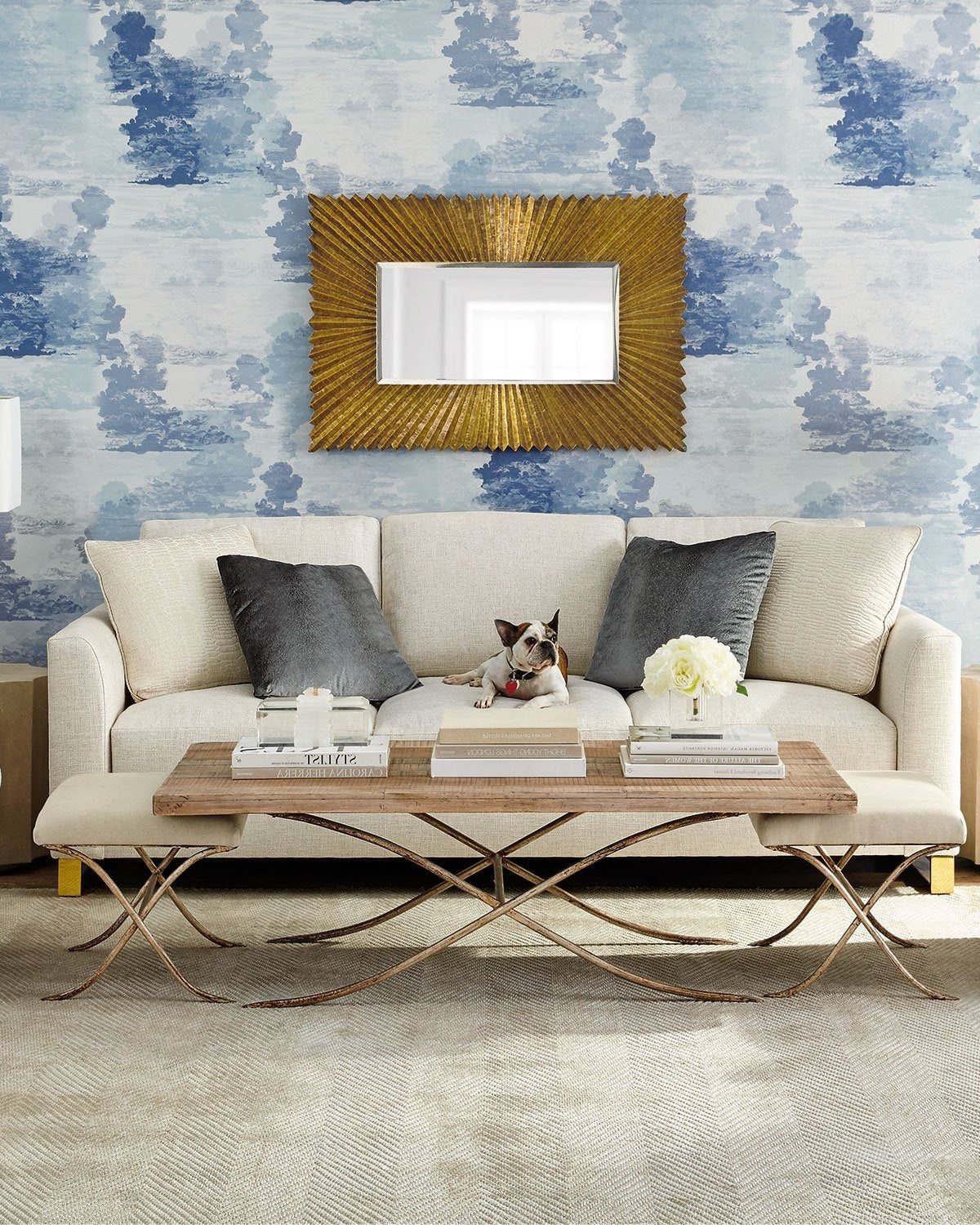 Настенное зеркало в прямоугольной раме "Майлз" выглядит как равномерный узор и имеет изящную форму с гармоничным латунным оттенком.