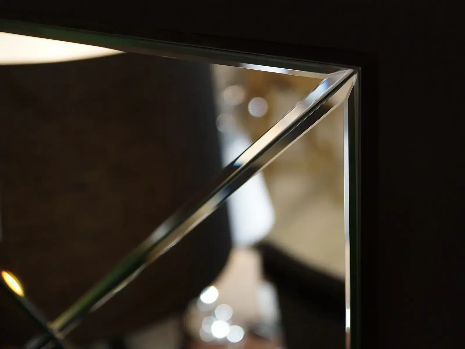 Стеклодетали закреплены на подзеркальных щитах с помощью клеевой двусторонней ленты и клея герметика. Зеркало возможно навешивать как в вертикальном так и в горизонтальном положении.