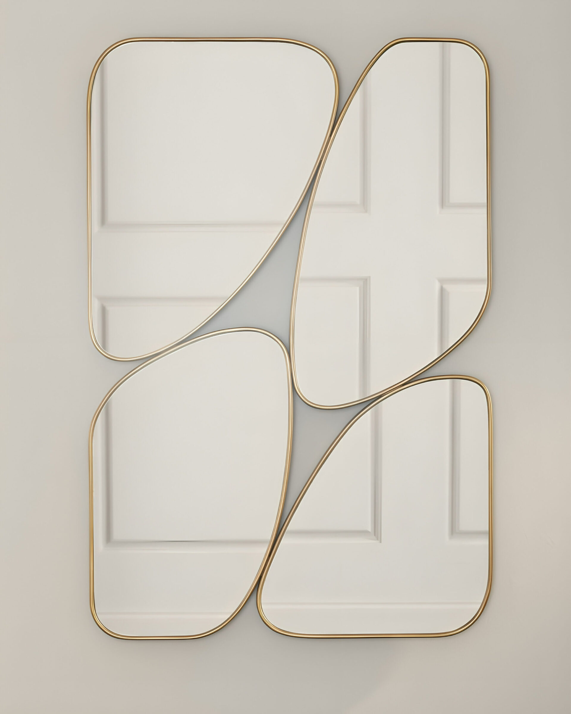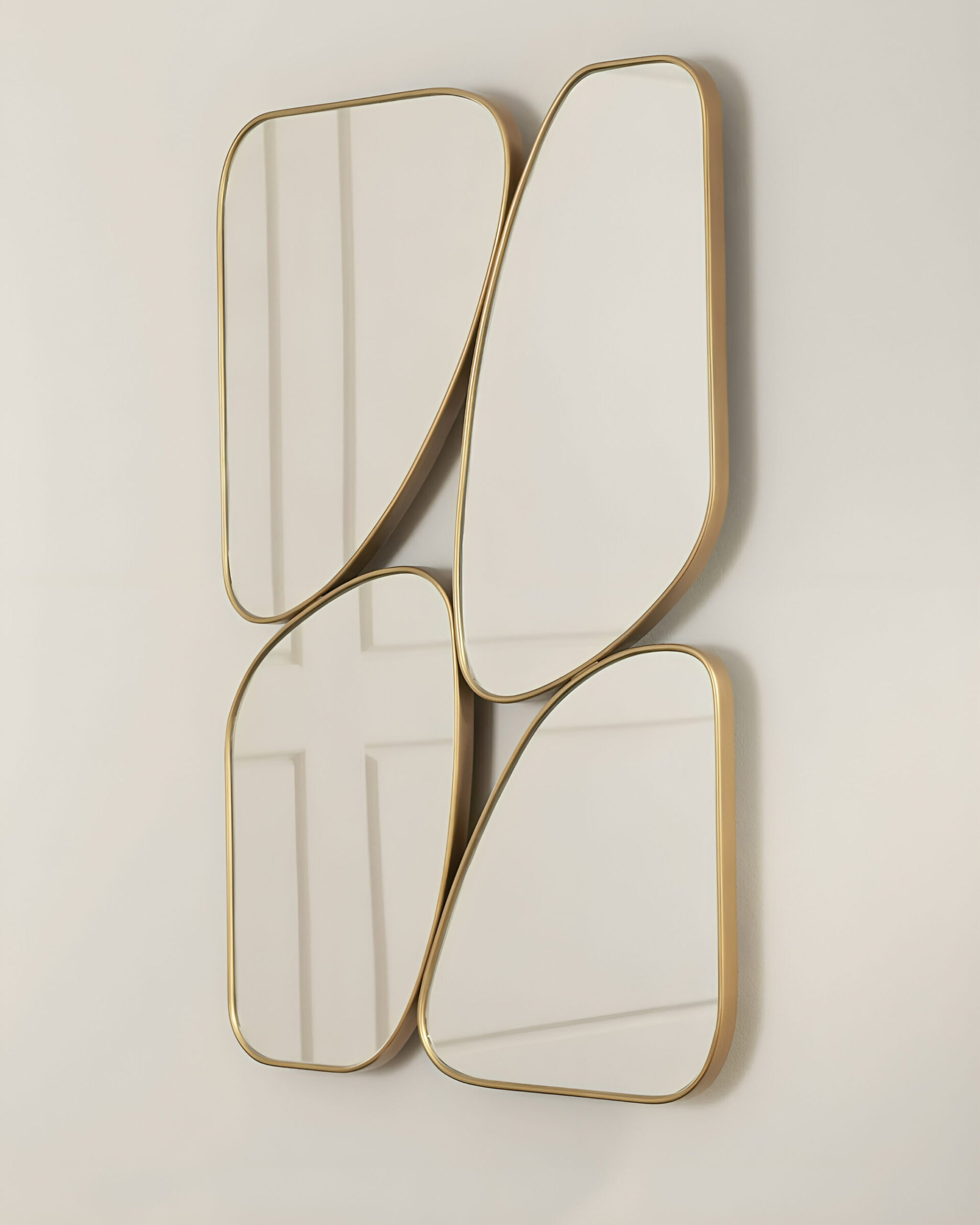 Большая золотая ассиметричная рама настенного зеркала “Муан”, выполненная в виде геометрического узора, настолько заманчива, что отражающая поверхность в центре может остановить Ваш взгляд в раздумье. Идеально подходит как зеркало для прихожей, чтобы завершить ваше современное пространство.