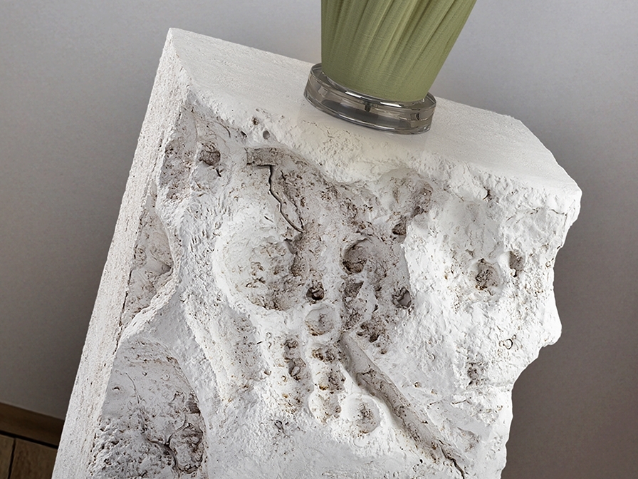 Приставной столик из OMG (формованный магний), текстура цемента, матовая белая отделка.