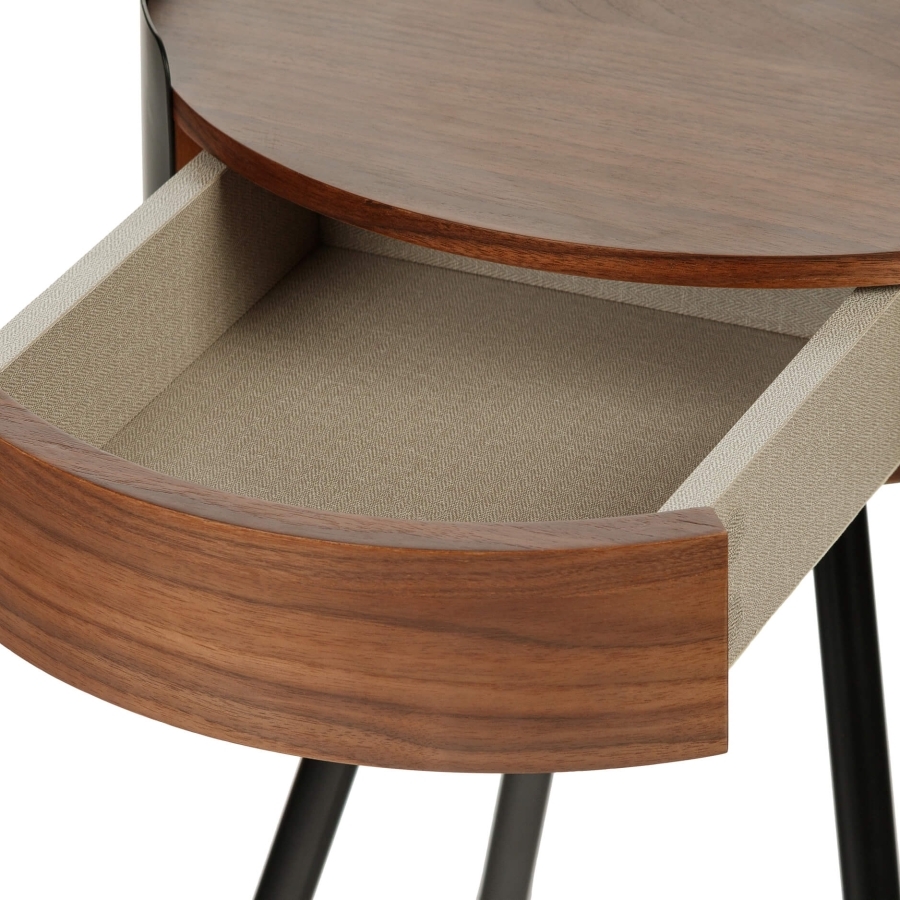 Кофейный стол Griss диаметром 45 см – это стильное решение для вашего интерьера! Шпон ореха и черные металлические ножки придают мебели изысканность и современность. Стильный дизайн дополнит любую гостиную или спальню.