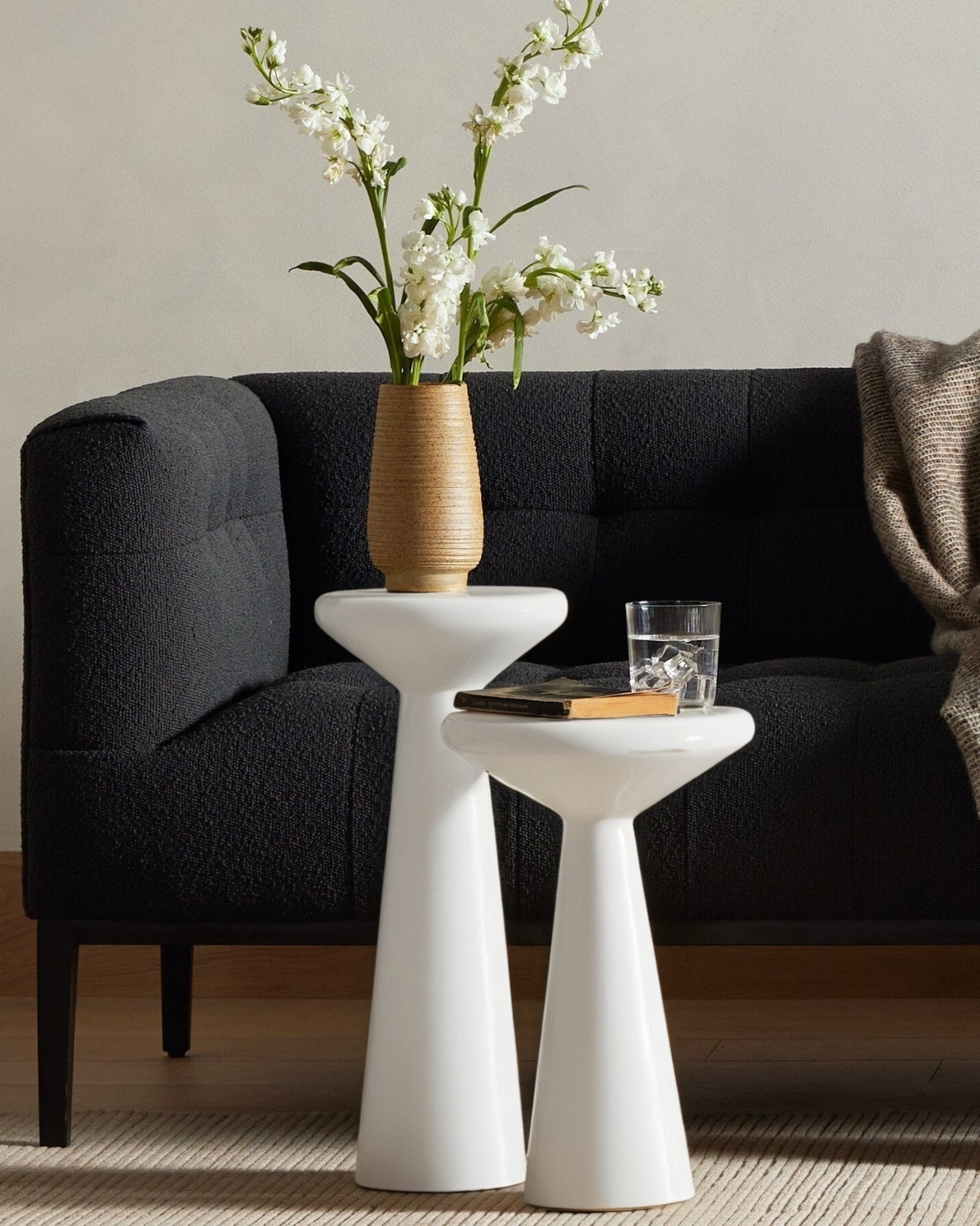 Комплект белых приставных столиков “Сомерсет” — это воплощение элегантности и минимализма, которые идеально дополнят любое пространство. Изготовленные из цемента с матовой белой отделкой, столики привлекают внимание своей необычной формой: широкая столешница плавно переходит в коническую ножку, создавая ощущение легкости и воздушности. В набор входят два столика шахматной высоты, которые можно использовать как вместе, так и по отдельности. Их универсальность позволяет гармонично вписаться в интерьер гостиной, спальни или офиса, добавив ноту современного стиля. Используйте столики для декора, в качестве подставки для напитков, книг или аксессуаров. Комплект “Сомерсет” — это не только функциональный предмет интерьера, но и стильное решение для завершения желаемого образа вашего пространства.