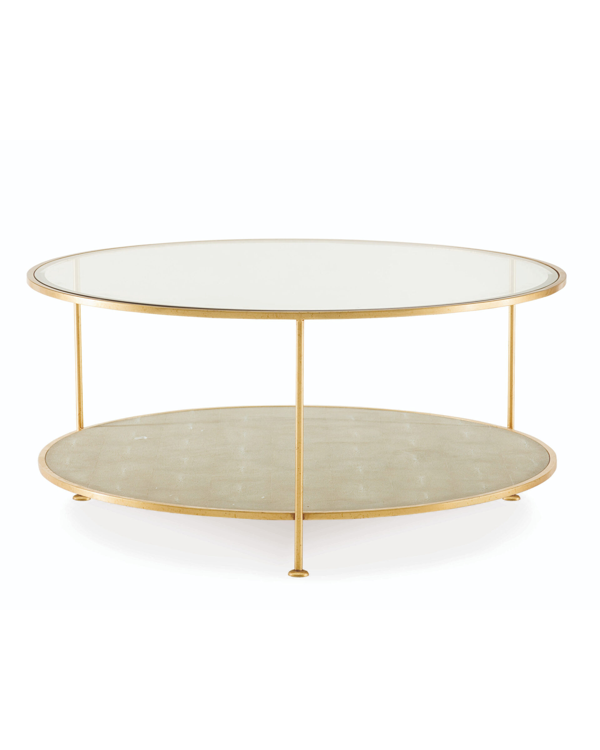 Круглый кофейный стол “Бойд” – это сочетание простой формы и элегантности, которое станет стильным дополнением к любому интерьеру. Нижняя полка стола имеет элегантную отделку с точным воспроизведением рисунка шагреневой кожи в бежевом цвете. Шагреневая кожа добавляет текстуру и дополнительный элемент декора, который делает этот стол уникальным. Верхняя полка стола выполнена из прозрачного закаленного стекла, которая придает визуальную легкость и простор, не загромождая пространство. Такой дизайн делает его идеальным решением для небольших помещений, где важно сохранить ощущение простора. Стол имеет три металлические ножки с золотистой отделкой. Эти ножки обеспечивают прочную и устойчивую основу, при этом не перегружая общий внешний вид стола. Круглый кофейный стол “Бойд” идеально впишется как в современные, так и в классические интерьеры.