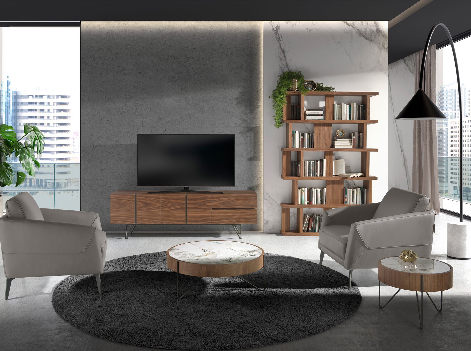 Круглый приставной столик 2139/MH2303B (2138/MH2303A) от фабрики Angel Cerda – чудесное дополнение к вашей обстановке в гостиной. Круглый приставной столик 2139/MH2303B (2138/MH2303A) – это современный дизайн и эстетичный, утонченный вид. Он добавит вашей гостиной стиль и индивидуальность, которая будет продиктована уникальной ореховой отделкой и великолепным мрамором сверху. Дополните пространство этим изумительным столиком! Столик круглый, имеет сборную конструкцию. Столешница изготовлена из керамогранита цвета белого мрамора с коричневым орнаментом. Она помещена в деревянный каркас с отделкой из натурального орехового шпона. Удерживают стол три проволочные ножки. Они сделаны из металла, покрыты черной матовой краской. Снизу для улучшения устойчивости на каждой ножке установлен наконечник. Размеры стола: ширина – 50 см, глубина – 50 см, высота – 38 см. Вес изделия – 23 кг. Столик предназначен только для эксплуатации в помещении. Только деликатная чистка без применения абразивов и отбеливающих веществ.