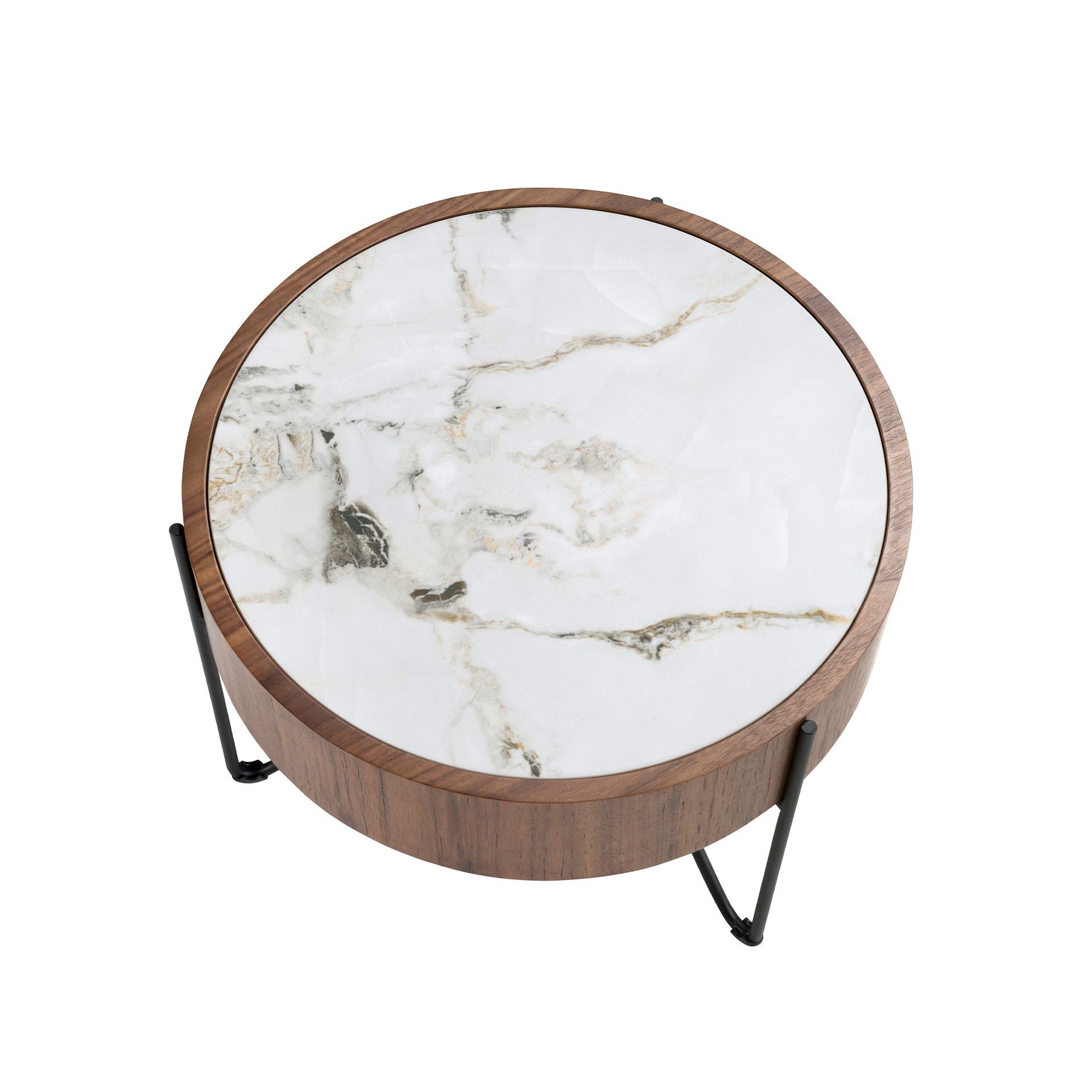Круглый приставной столик 2139/MH2303B из ореха и мраморной керамики