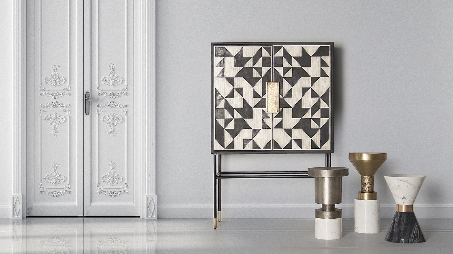 Приставной столик Recke, цвет старого золота, стиль арт-деко. Изготовлен из латуни в сочетании с мрамором и деревом DM. Съемное изделие.