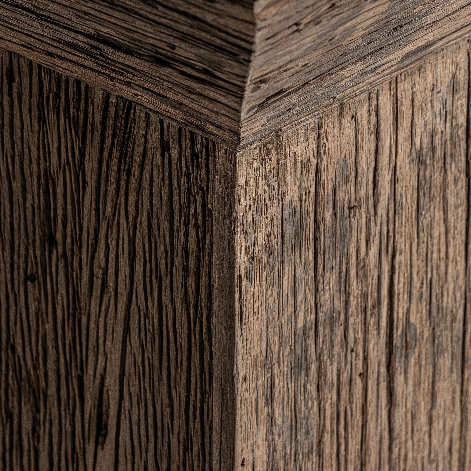 Приставной столик Samsung, цвет натуральный/состаренный белый, в этническом стиле. Изготовлен из переработанной сосновой древесины в сочетании с мрамором. Различные породы дерева: сосна, манго, тик, акация.