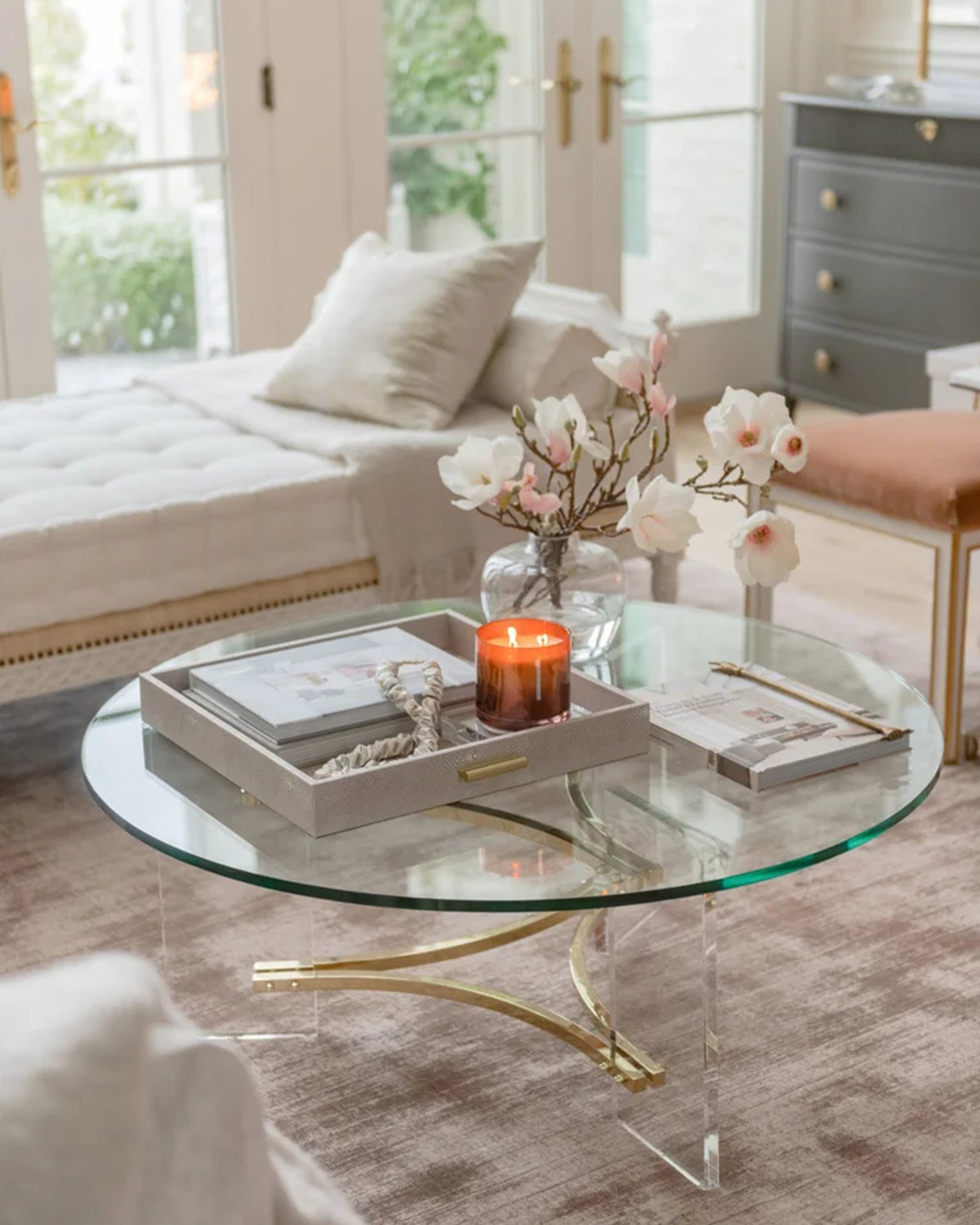 Стол журнальный “Гарнет” — это элегантное и стильное решение для современного интерьера. Его уникальный дизайн сочетает в себе легкость и роскошь, делая его настоящим акцентом в любом пространстве. Круглая столешница из закаленного стекла добавляет изделию изысканности и визуальной легкости, а прямоугольные акриловые ножки создают эффект невесомости, подчеркивая современный стиль столика. Особое внимание привлекают акцентные детали в середине ножек, выполненные в цветовой гамме полированной латуни. Эта отделка добавляет столику утонченности и гармонично сочетается с различными стилями интерьера — от минимализма до ар-деко. Столик “Гарнет” не только красив, но и практичен. Благодаря компактным размерам он легко вписывается в любое пространство: гостиную, спальню, офис.