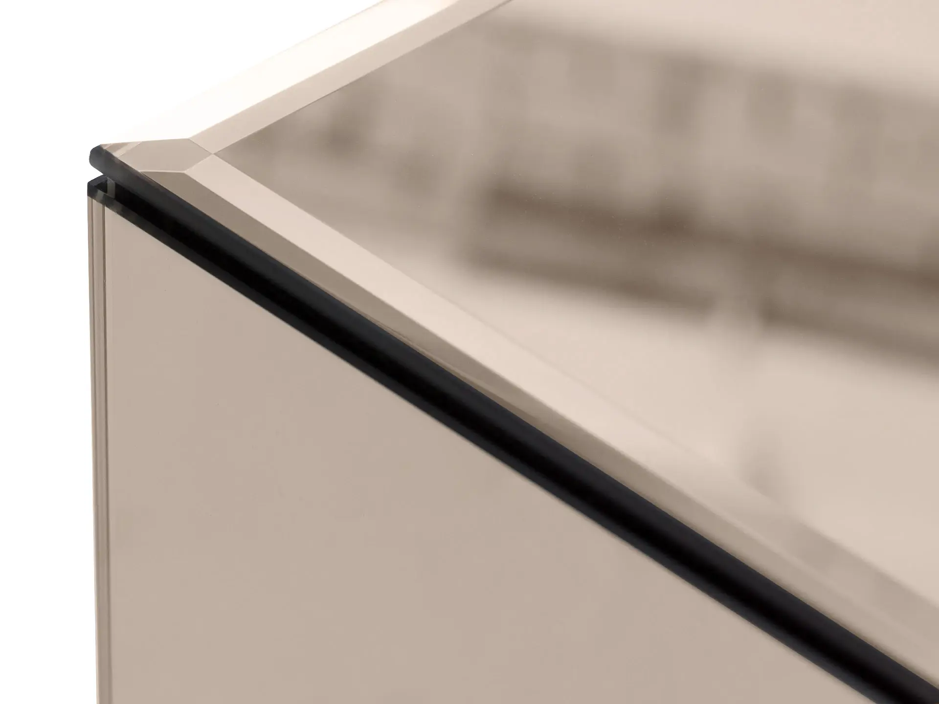 Основа стола – ламинированная плита черная шагрень толщиной 16 мм. Кромки зеркала крышки – фацет. Другие элементы окантованы еврокромкой.