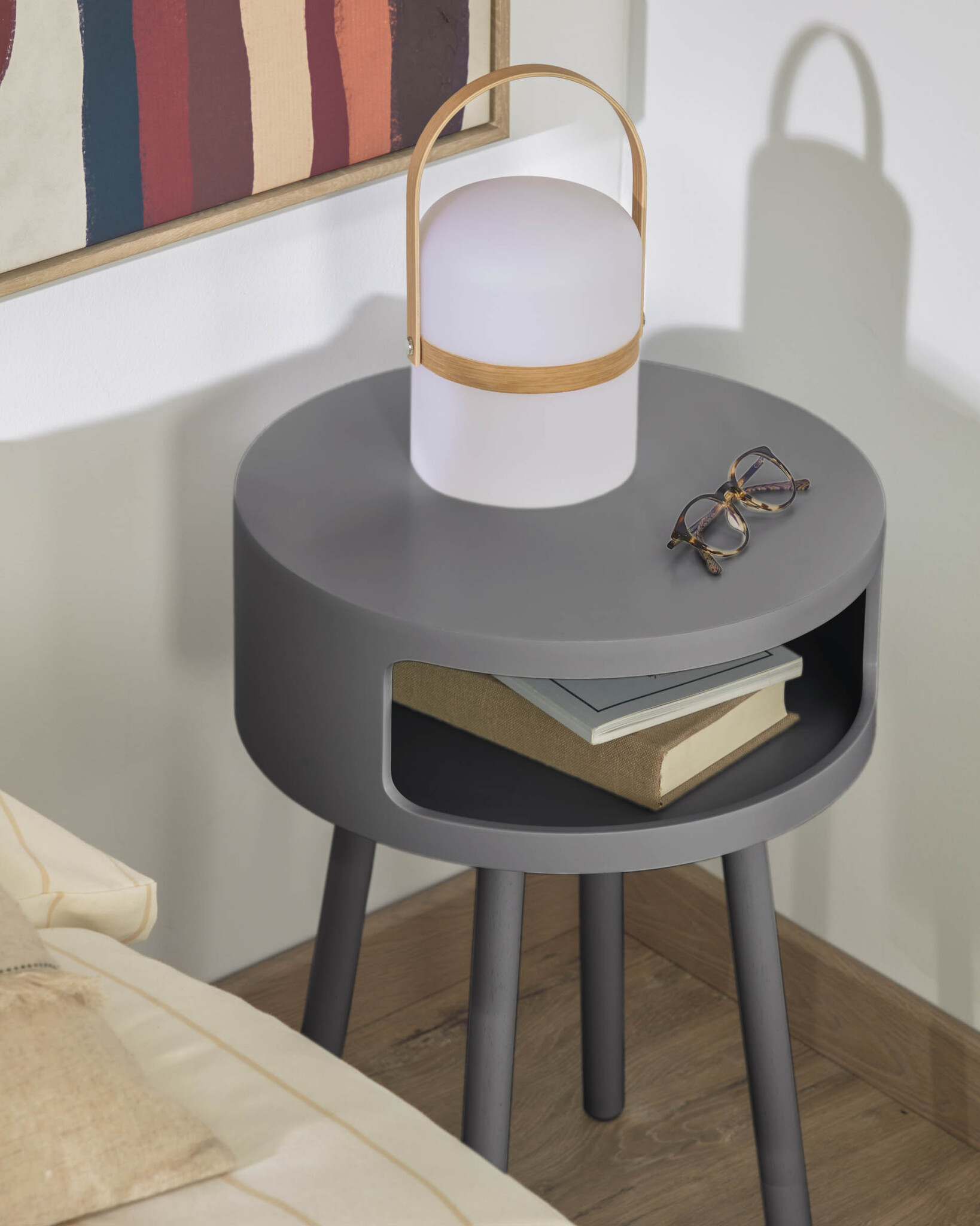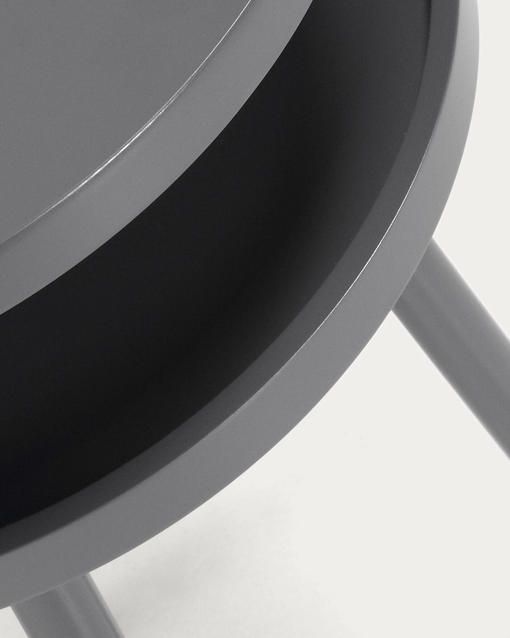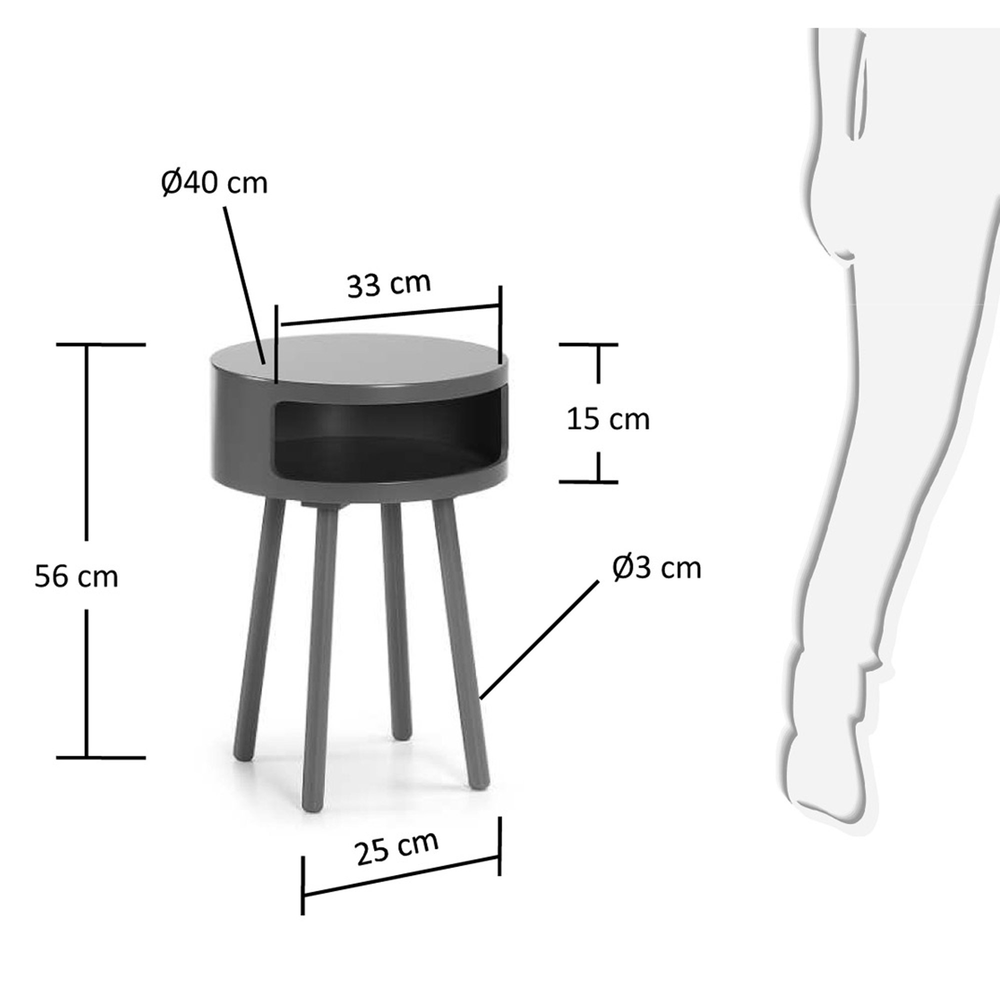 Столик Bruk от фабрики La Forma — миниатюрный предмет интерьера, который пригодится в каждой квартире. Столик Bruk с первой секунды убеждает в том, что будет уместен в прихожей или гостиной, спальне или на кухне. Это тот самый предмет интерьера, когда нужно что-то компактное и, при этом, функциональное. Благодаря круглой столешнице, изделие отлично встанет даже в угол, а вместительная полка станет отличным хранилищем для мелочей или журналов. Изделие сделано из высококачественной древесноволокнистой плиты. Материалом для ножек послужил массив гевеи — каучуконосного дерева, произрастающего в тропиках Америки и Юго-Восточной Азии. Производители мебели ценят гевею за повышенную прочность и устойчивость к воздействию вредителей. Эта древесина практически не поддаётся воздействию влаги. Кроме этого, изделие покрыто серой краской, которая также защищает его от внешних воздействий. Серый — универсальный цвет, который широко распространен в современных стилях. Поэтому изделие гармонично впишется в созданный ранее интерьер. Столешница опирается на четыре ноги, равноудаленных от ее центра. Их высота составляет 56 см. Диаметр столешницы — 40 см. Ширина полки — 33 см.