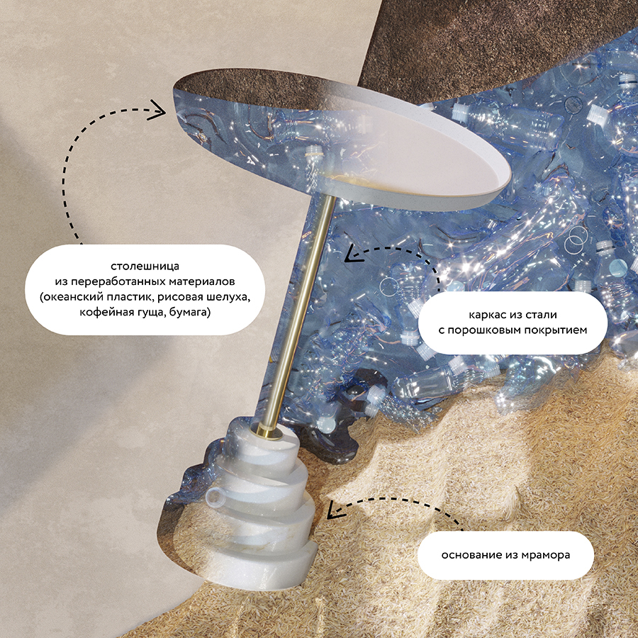 Столик кофейный Sustainable collection – не просто предмет мебели, а олицетворение заботы об окружающей среде и стремления к функциональному дизайну. Особенности и преимущества: - Материалы, использованные в создании столешницы, не только делают ее прочной и устойчивой, но и снижают негативное воздействие на окружающую среду. - Стальной каркас с порошковым покрытием и основание из мрамора обеспечивают столику практичность, надежность и долгий срок службы. - Модель с круглой столешницей смотрится элегантно и не занимает много места, благодаря чему отлично подходит для небольших помещений. - Нейтральное цветовое решение позволяет легко интегрировать мебель в различные варианты оформления интерьера. Коллекция Sustainable создана с применением переработанных материалов, таких как рисовая шелуха, кофейная гуща, бумага и пластик, собранный в океане. Такой подход к производству товаров помогает уменьшить негативное влияние потребительского образа жизни на окружающую среду и вдохновляет на выбор осознанного пути развития. Полученные таким способом предметы имеют необычный вид и высокие эксплуатационные характеристики. Материалы: столешница – переработанный материал, каркас – сталь, основание – мрамор. Размеры: 37,7х37,7х53 см. Цвет: серый/белый. Пыль и загрязнения с поверхностей можно удалять при помощи мягкого влажного материала. Сразу после очищения мебель рекомендуется протереть сухой тканью. Запрещается применение жестких щеток, абразивов, порошкообразных и едких средств на основе кислот.