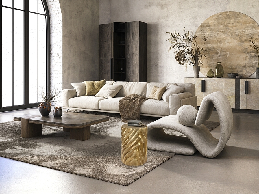 Приставной столик из OMG (формованный магний), отделка — патинированное золото.