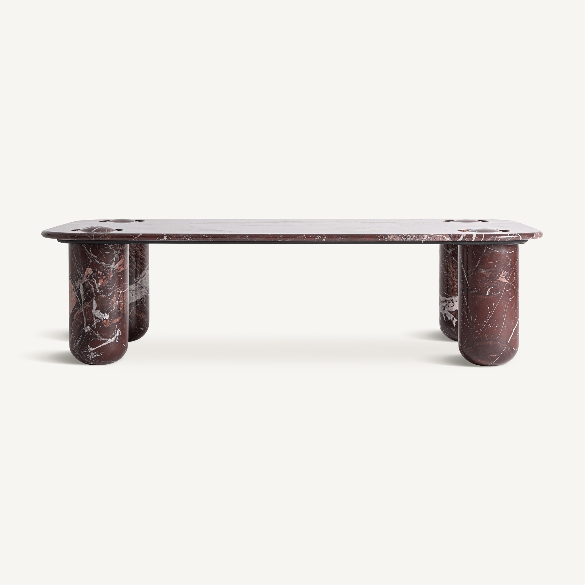 Журнальный столик Bourg в современном стиле, изготовлен из бордового мрамора с глянцевой отделкой. Изделие разборное. Ширина: 150 см, Глубина: 90 см, Высота: 40 см