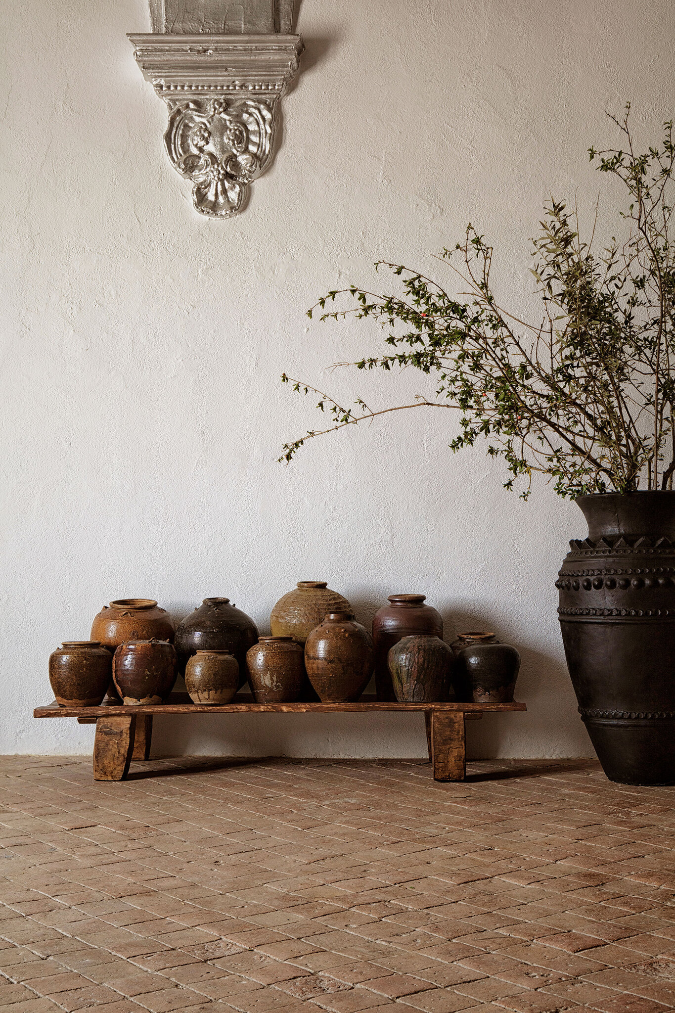 Журнальный столик Erara, коричневый потертый цвет, этнический стиль. Изготовлен из тикового дерева. Ширина: 180 см, Глубина: 60 см, Высота: 34 см.