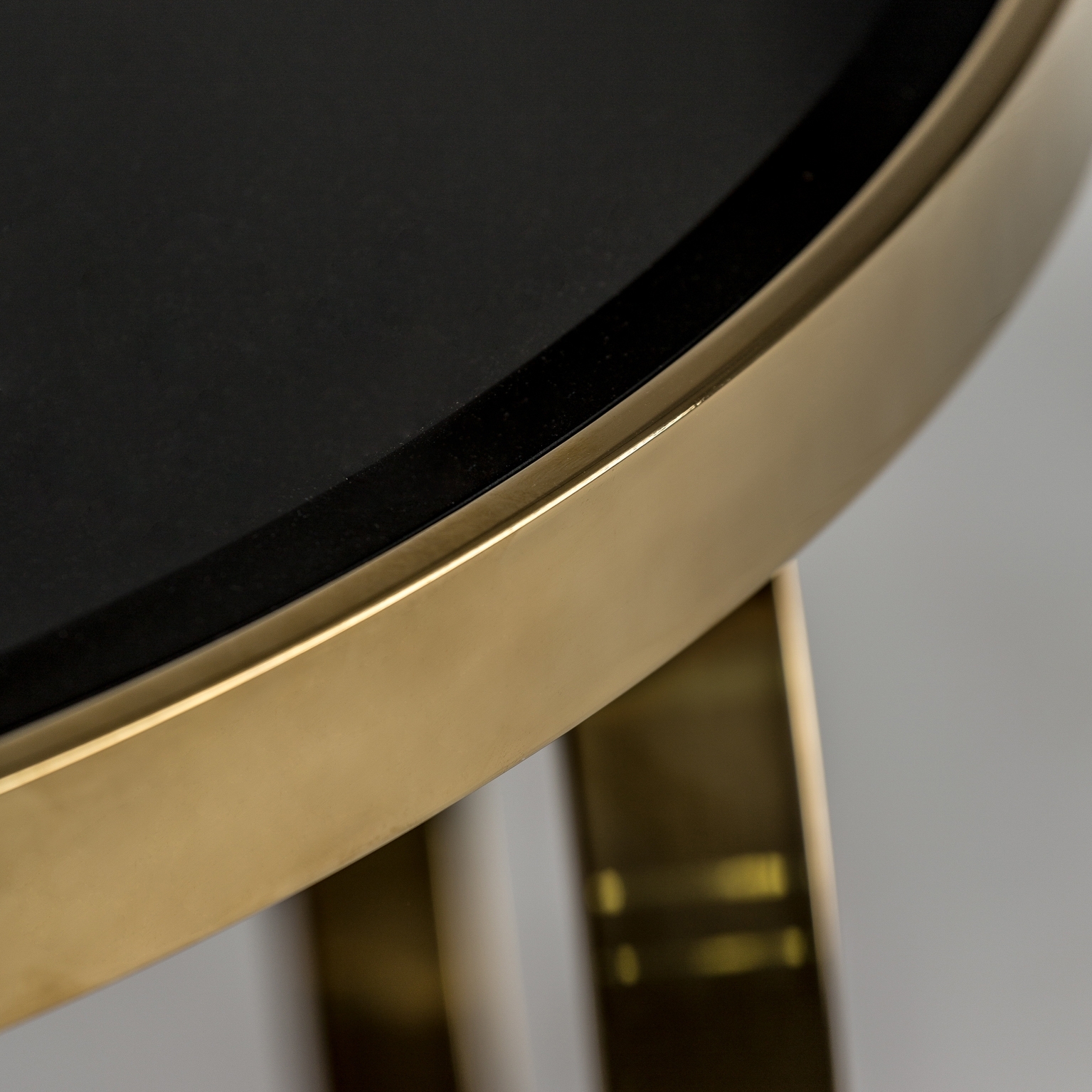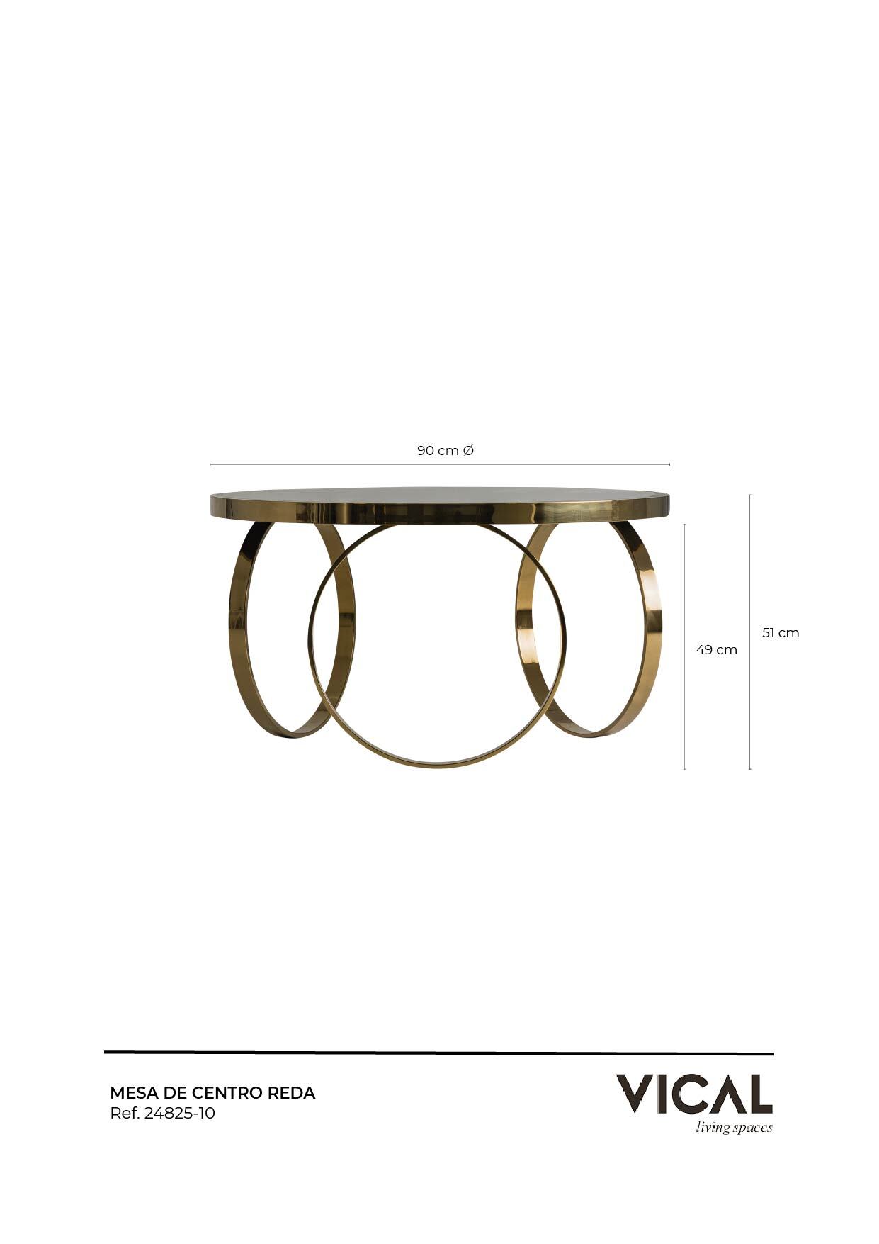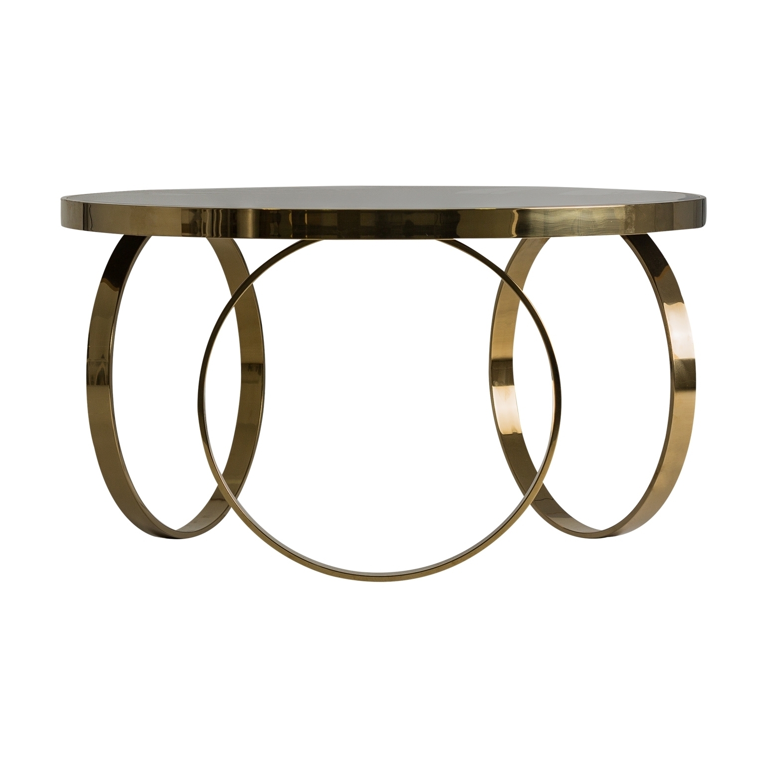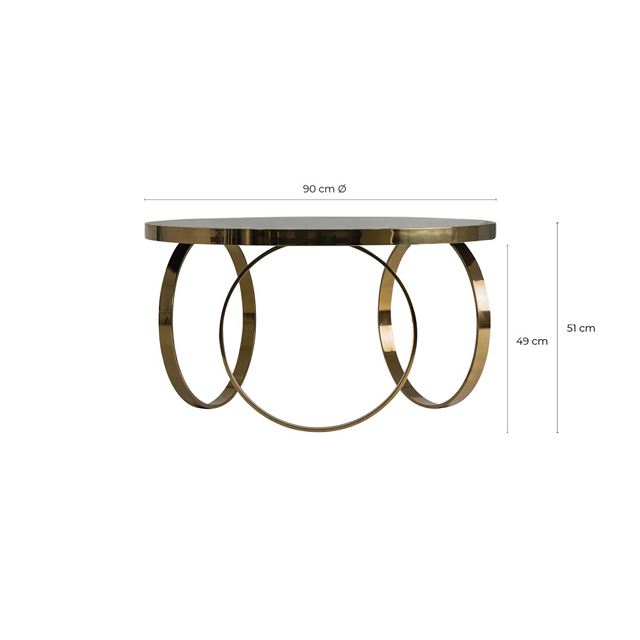 Журнальный столик Reda, в глянцевом золоте, в стиле ар-деко. Изготовлен из зеркального материала в сочетании с МДФ и сталью. Изделие можно разобрать. Ширина: 90см, Глубина: 90см, Высота: 51см