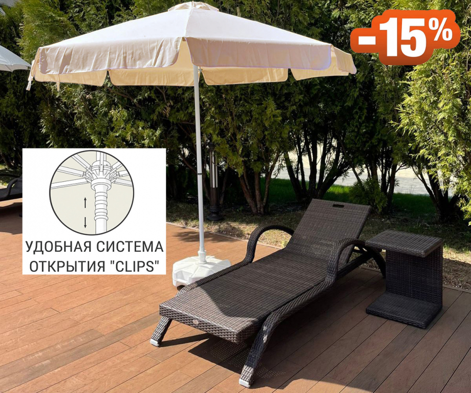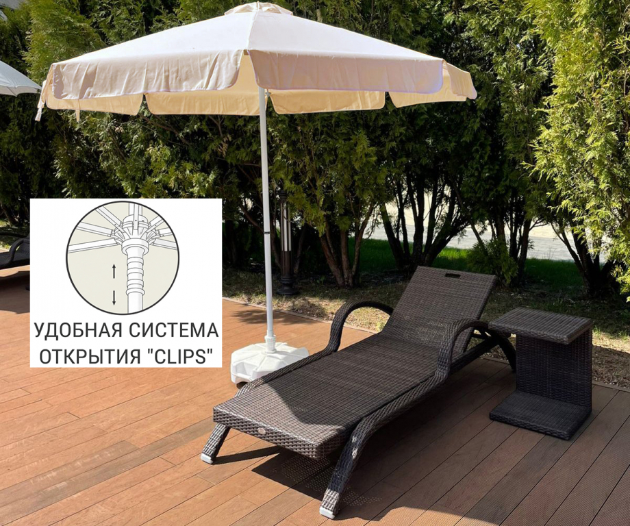 Зонт пляжный профессиональный Ø2.5 м Kiwi Clips цвет белый/бежевый — нежная классика с интеллектуальным механизмом.