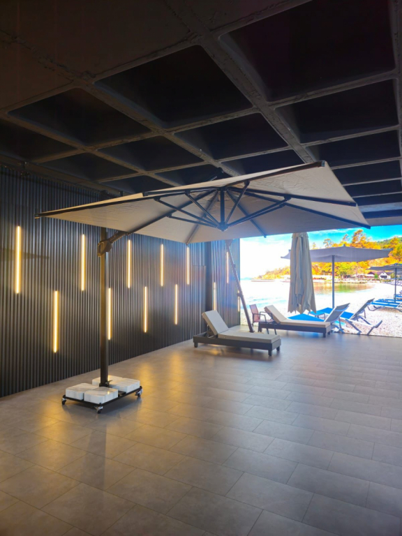 Banana Plus Premier — новейшая модель компании THEUMBRELA, представляющая собой усовершенствованную версию легендарного зонта. Это особенный продукт для тех, кто ищет крутой дизайн, стильный внешний вид и максимальную функциональность среди зонтов с боковой опорой. Квадратный купол 3х3 метра создает идеальную тень для обеденных зон и террас. Зонт легко открывается и закрывается при помощи рукоятки с автоблокировкой для безопасности. Купол поднимается под углом до 60°, при этом не нужно двигать мебель — инновационная конструкция позволяет закрывать зонт прямо над столом.