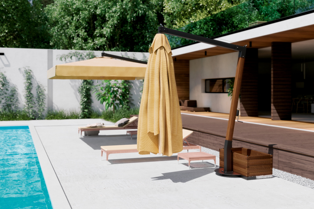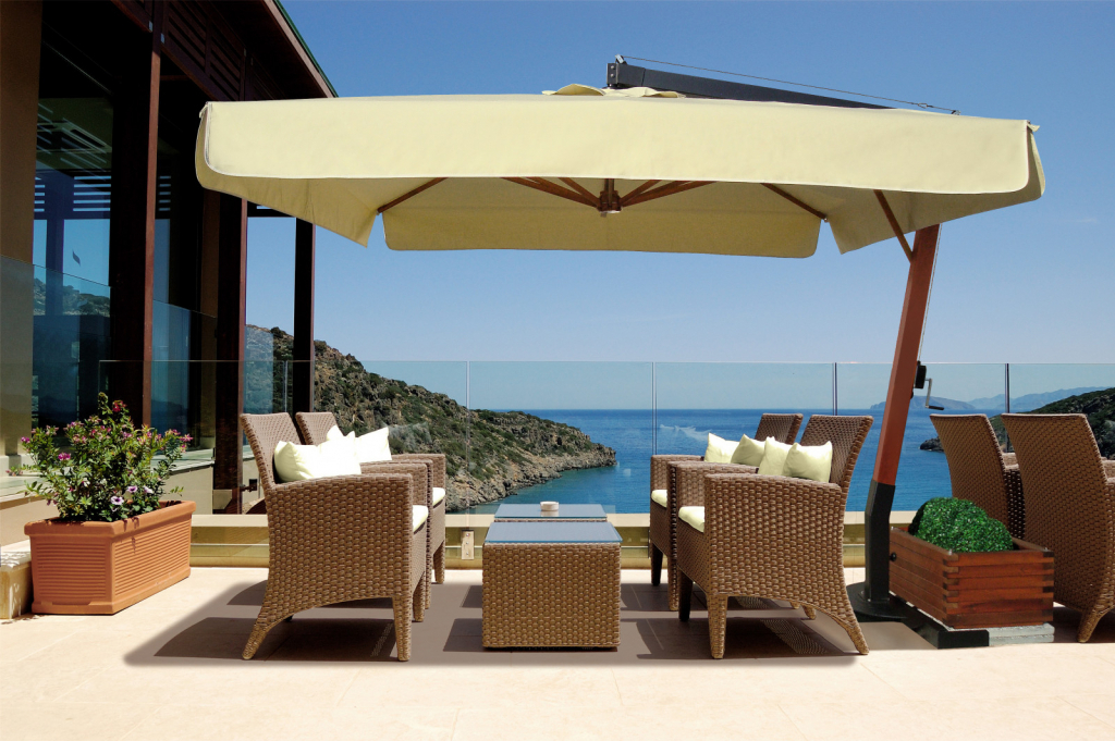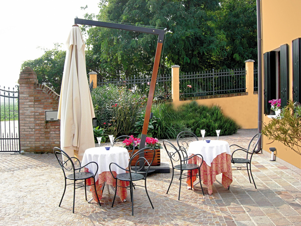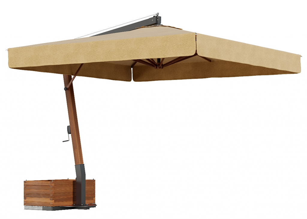Профессиональный уличный зонт Vespucciс боковой опорой, который защитит от палящих лучей или летнего дождя и создаст приятную уютную атмосферу на заднем дворе загородного коттеджа, террасе кафе или ресторана, а также любой другой открытой площадке. Приобретая уличный зонт Vespucci,Вы получаете прекрасный аксессуар для отдыха в солнечную погоду, когда солнечные лучи войдут в фазу активности, Вы будете комфортно себя чувствовать в тени большогосадового зонта. Вертикальная опоравыполнена из дерева ироко с пропиткой, горизонтальная опора - из алюминия,купол может быть выполнен из натурального или окрашенного акрила, Tempotest Para или ПВХ. Благодаря конструкции из дерева и алюминия, а такжепорошковому покрытию, зонт устойчив к коррозии. Все ткани имеют высокую стойкость к выцветанию, что обеспечивает долгий срок службы. Характеристики: Материал каркаса: вертикальная опоравыполнена из дерева ироко с пропиткой, горизонтальная опора - из алюминия, окрашенного в цвет антрацит. Возможный материал купола: натуральный акрил (слоновая кость), окрашенный акрил, Tempotest Para или ПВХ.Более детально рассмотреть материалы и цвета можно впалитрефабрикиOFV. Волан: есть. Виды отделки края волана за дополнительную стоимость: зубчатая, волновая. Металлические детали оцинкованыи окрашены в цвет антрацит. Ветряной клапан: есть. Размер опоры: 92х92 мм. Количество спиц: 8 шт. Размер спиц: 17х35 мм. Спицы выполнены из дерева кото, окрашенного в цвет дерева ироко. Укрепленные спицы между вертикальной опорой и каркасом. Возможность вращения на 360°. Открытие/закрытие зонта: при помощи рукоятки. Стальная база входит в комплект. Утяжелительные плиты 500х500 мм необходимо приобретать отдельно. Дополнительно можно приобрести: Оцинкованнаястальнаяпластина для цементирования или для фиксации к полу, размер: 150х170х3мм. Нескользящая стальнаяпластина для цементирования или для фиксации к полу, размер: 300х300х6+2 мм. Чехол для базы, размер: 560х1070х245 мм. Утяжелительная плита, размер: 500х500х35 мм, вес: 21 кг. Утяжелительная цементная плита с ручками, размер: 500х500х115 мм, вес: 63 кг. Алюминиевый горшок для цветов, размер: 1065х500х355 мм. Горшок для цветов из сосновоой древесины с пропиткой, окрашеннойв цвет дерева ироко. Встроенный комплект светодиодного освещения, включая дистанционное управление (белый свет 4000 K°). Посмотреть технические характеристики. Открытьинструкцию по сборкеVespucci. Для того, чтоб зонт прослужил долго, воспользуйтесьинструкциями по эксплуатации и хранению зонтов. Цена на сайте указана за модель с куполом из Tempotest Para черного цвета. Цены на другие модели Вы можете уточнить у менеджеров.