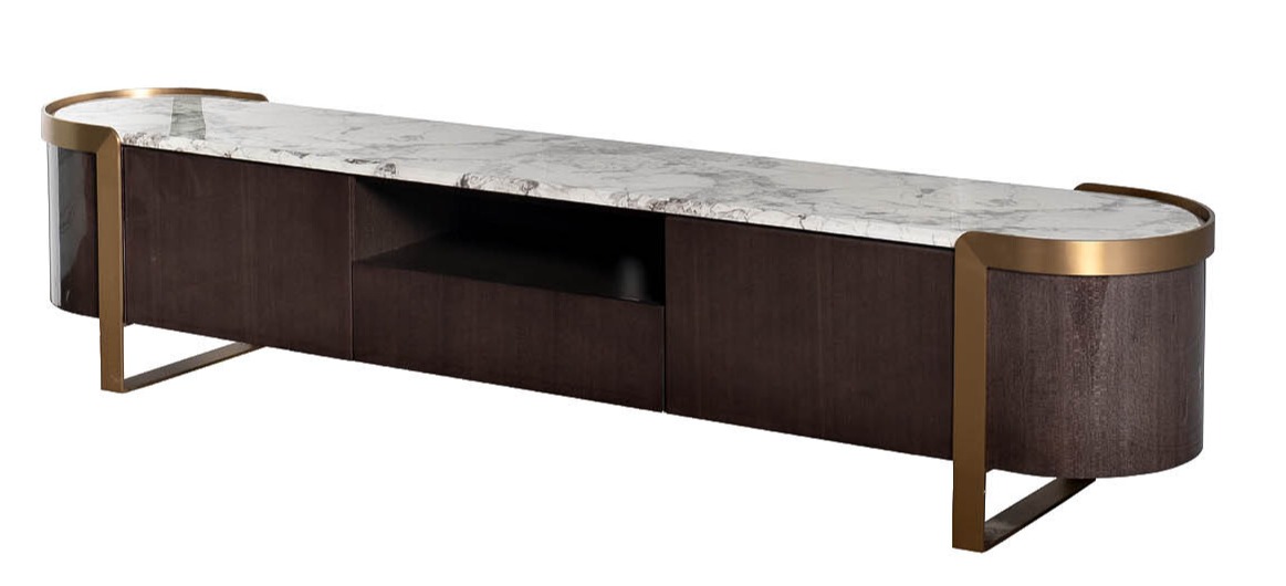 Тумба создана в изысканных дымчато-серых тонах и объединила в себе последние тенденции мебельного дизайна. Отделка выполнена из современных материалов с использованием шпона древесных пород, а столешница имитирует мраморное покрытие, что делает тумбу еще более элегантной. Ширина 220 см позволяет разместить телевизор любой диагонали и создать полноценную медиазону.