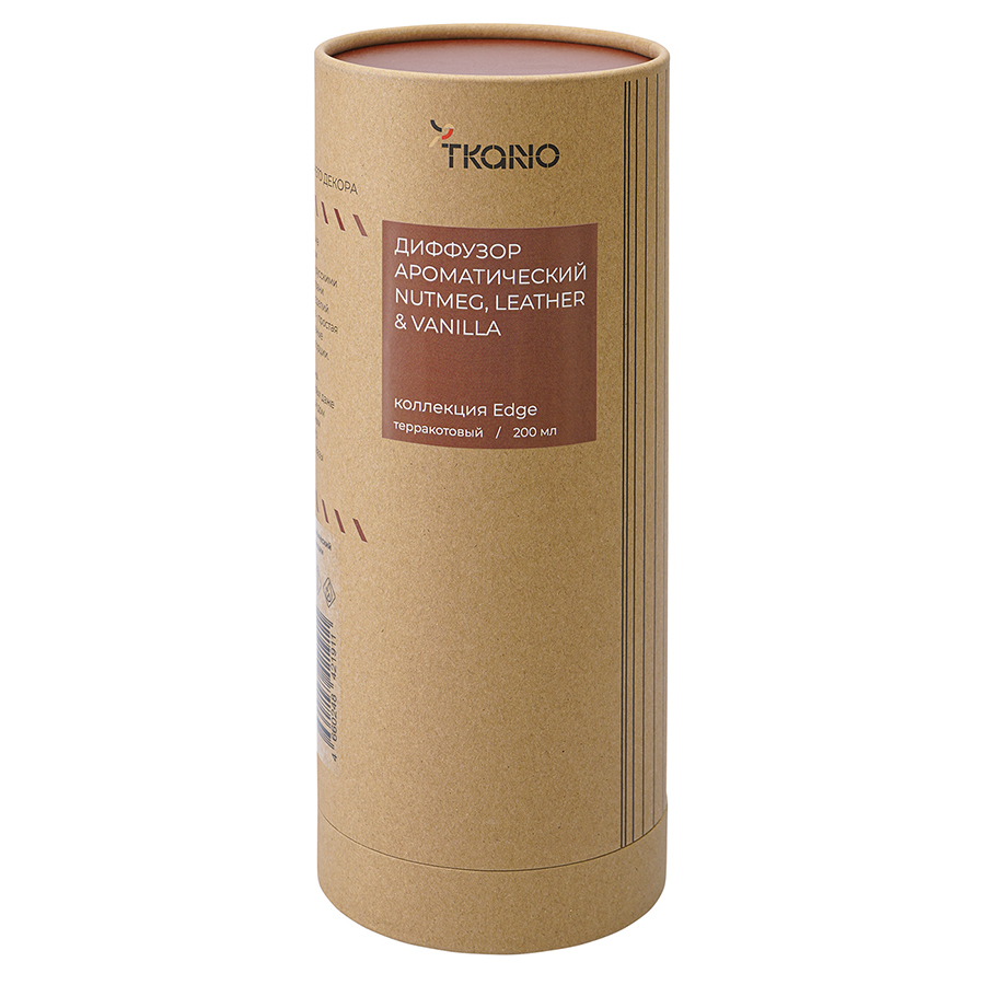 Диффузор ароматический Nutmeg, Leather & Vanilla терракотового цвета из коллекции Edge с дизайном, вдохновленным русскими традициями, отлично подойдет для домашнего декора и создания в интерьере уютной, расслабляющей атмосферы. Фактурные грани и округлая поверхность стеклянного флакона отсылают нас к образу купола – символу духовного подъема и стремления к совершенству. В комплект входят 10 фибровых палочек. Аромат с нотами мускатного ореха, кожи и ванили понравится поклонникам селективной парфюмерии и всем, кто любит эксперименты и находит вдохновение в самой жизни. Ароматическая композиция ассоциируется с уверенностью, благородством и достатком. Верхние ноты: мускатный орех, кожа. Средние ноты: пачули, жасмин, ветивер. Базовые ноты: уд, мускус, сливочная ваниль, сандаловое дерево. Объем: 200 мл. Материал флакона: стекло. Время диффузии: 14-16 недель, в зависимости от количества фибровых палочек. Для создания ароматической композиции использовались отдушки из Англии. Для применения поставить емкость с ароматическим составом на ровную поверхность и аккуратно открыть ее. Вставить палочки в горловину флакона (для легкого аромата достаточно 5 палочек, для более интенсивного - от 6 до 10 палочек). Аромат раскрывается в течение 3–6 часов. Рекомендуем переворачивать палочки каждые 2–3 недели, как только аромат становится менее интенсивным. ! Установить диффузор в недоступном для детей и животных месте, вдали от источников тепла, открытого огня и раскаленных предметов. ! Избегать попадания ароматического состава на лакированные, окрашенные или глянцевые поверхности. В случае попадания жидкости на мебель или другие предметы незамедлительно уберите ее. ! Избегать контакта с кожей и глазами. ! В случае контакта с глазами немедленно промыть их большим количеством холодной воды и, если необходимо, обратиться к врачу. ! Не употреблять внутрь. При случайном проглатывании немедленно обратиться к врачу и показать этикетку с составом. ! Хранить флакон с ароматическим маслом с плотно закрытой крышкой в сухом и прохладном месте. ! Ароматическая жидкость не предназначена для ароматерапии в механических диффузорах и увлажнителях.
