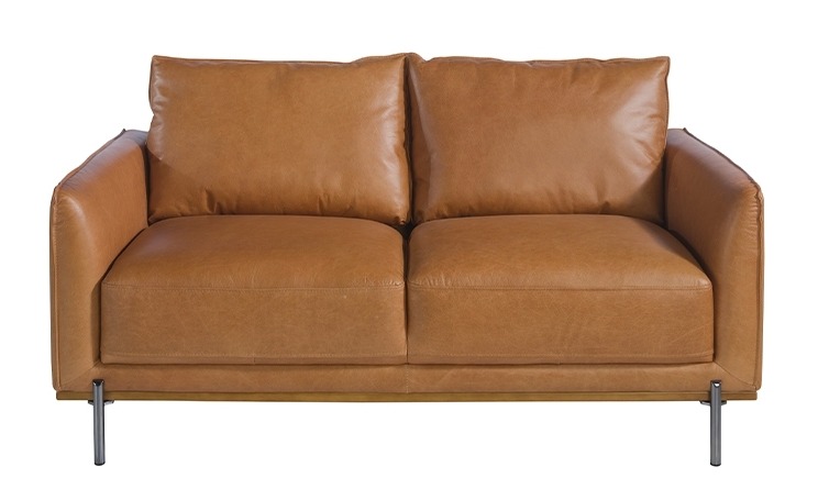 Двухместный диван Angel Cerda. Обивка из натуральной кожи (коричневая). Каркас из сосны, наполнитель — ППУ. Металлические ножки с хромовым покрытием, пластиковые накладки. Подушки набивные, съёмные. Срок поставки — 60-70 дней.
