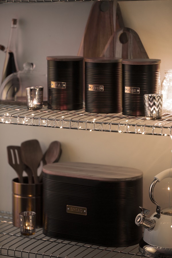 Емкость для хранения чая Otto поможет организовать рабочее пространство на вашей кухне. Эргономичный контейнер из эмалированной стали снабжен бамбуковой крышкой с воздухопроницаемым уплотнителем из силикона, что поможет продлить свежесть продукта и защитит его от воздействия влаги. При создании изделия дизайнеры используют золотистый декор, который безупречно сочетается с матовым покрытием черного цвета. Благодаря этому емкость добавит элегантности классическому и современному интерьеру кухни. Помимо чая в банке можно хранить любые сыпучие продукты.