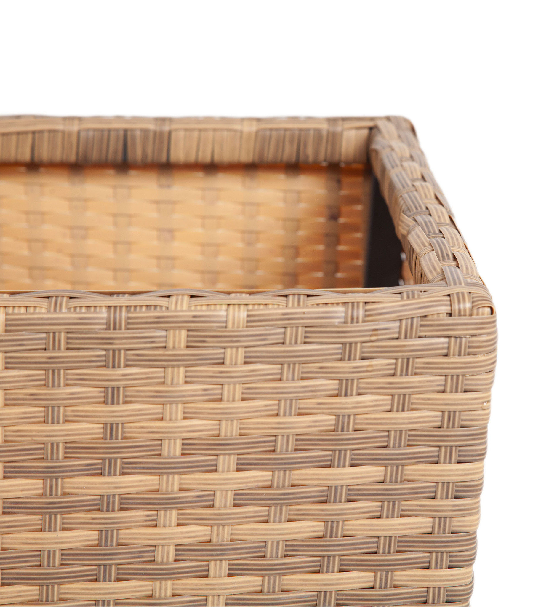 Плетеное кашко «Капучино» подходит для комнатных и уличных растений. Изготовлено из плоского искусственного ротанга соломенного цвета. Обладает высокой стойкостью к погодным условиям, перепадам температуры, не подвергается коррозии, поэтому можно использовать на открытом воздухе круглый год. В основе алюниевый каркас, который вручную оплетен ротангом. Высота кашпо - 70 см, длина и ширина - по 40 см.
