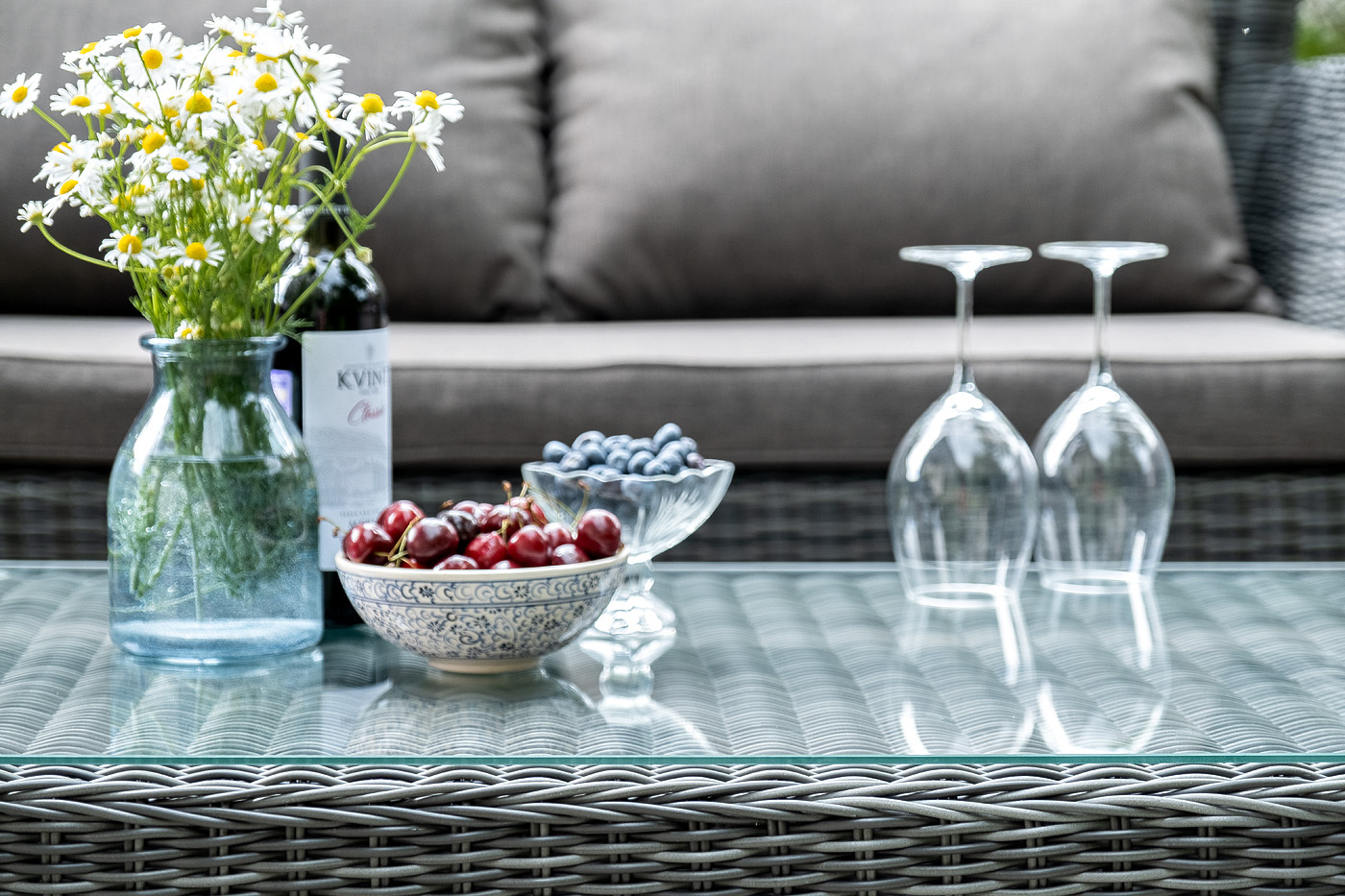 Лаунж-зона «Капучино Сингл» на 4 персоны. Она включает в свой состав: - двухместный диван (размер – 1700×865×815 мм). - два кресла (размер – 1040×865×815 мм). - плетеный журнальный столик (размер – 1100×660×340 мм). Прочный алюминиевый каркас усиливает устойчивость мебели. Его дополняет плетение в цвете "графит", которое представлено из круглого искусственного ротанга. Более комфортной лаунж-зону делают мягкие подушки с чехлами из серого полиэстера плотностью 300гр/м2. Ткань предварительно обрабатывается влагоотталкивающими составами. Столешница журнального столика также входит в комплект и поставляется в собранном виде с самим столиком. Она изготовлена из закаленного стекла – 5 мм. Параметры дивана и двух кресел без подушек: Глубина сидения – 630 мм; Высота сидения – 370 мм; Высота спинки – 470 мм. "Капучино" диван из искусственного ротанга двухместный, цвет графит 1шт. 1 700Х865Х815, "Капучино" кресло из искусственного ротанга, цвет графит 2шт. 1 040Х865Х815, "Капучино" журнальный столик из искусственного ротанга, цвет графит 1шт. 1 100Х660Х340,