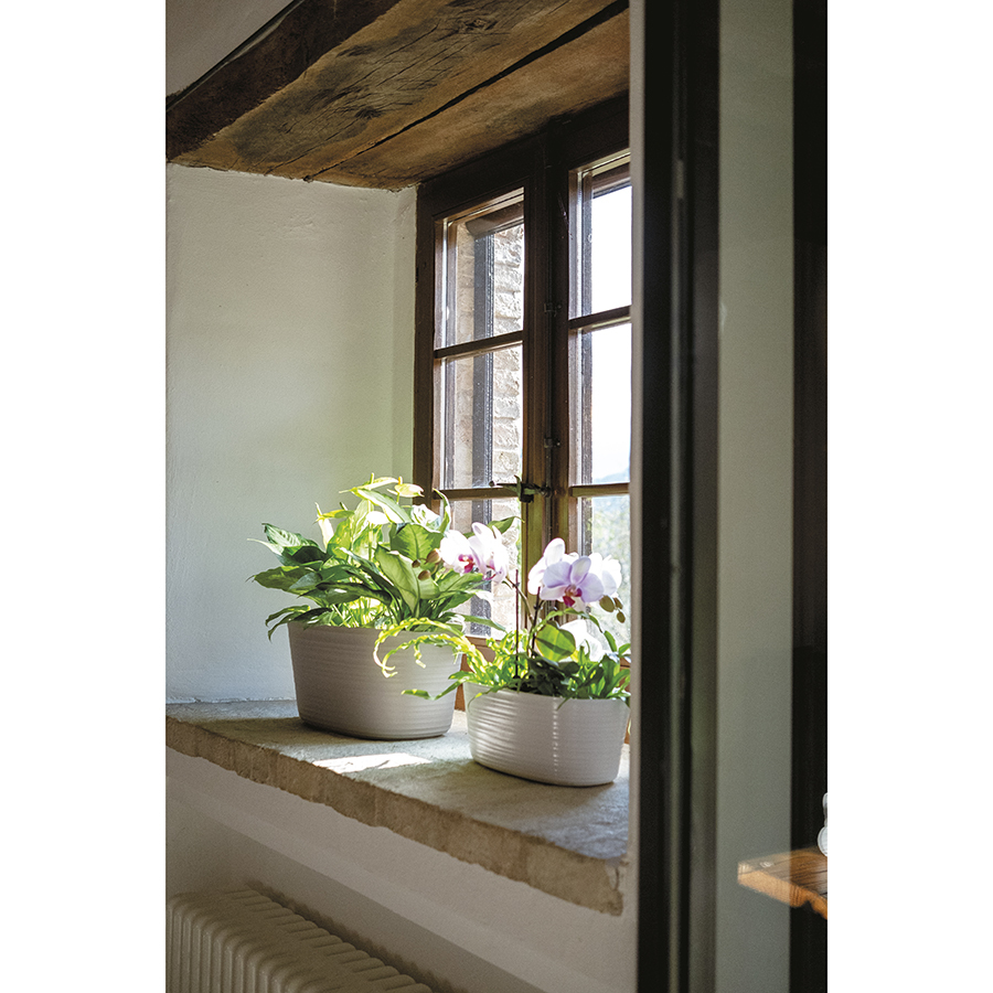 Кашпо для комнатных растений выполнено из переработанного пластика. Дизайн изделия напоминает керамику, а реалистичности внешнему виду придают тщательно подобранные пастельные тона и неровные круговые узоры, создающие эффект ручной работы. Кашпо отлично гармонирует с другими предметами из коллекции Tierra. Материал: переработанный пластик. Размеры: 30х15,7х12,8 см. Цвет: молочный. От загрязнений очищать в теплой мыльной воде с помощью мягкой губки.