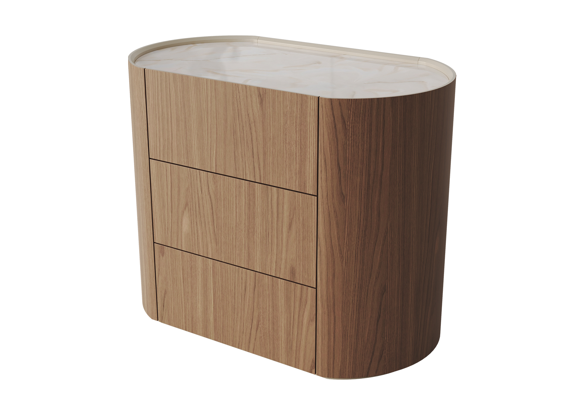 Комод Lagom 3 ящика ширина 90 см Высота: 72,2 см Ширина: 90 см Глубина: 51 см Материал: шпон дуба, шпон березы, МДФ Каркас ящиков: ЛДСП Покрытие корпуса: шпон ореха, лак Покрытие столешницы: акриловый камень Staron Supreme Latte Cream (VL343)