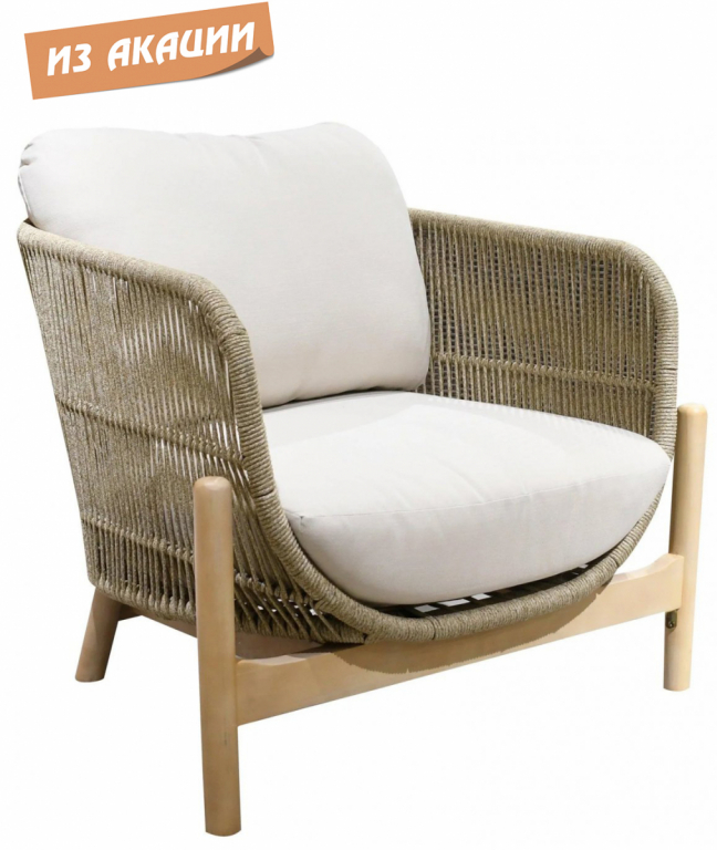 Кресло деревянное плетеное с подушками Talara цвет бежевый/лен — современная эстетика из акации и роупа