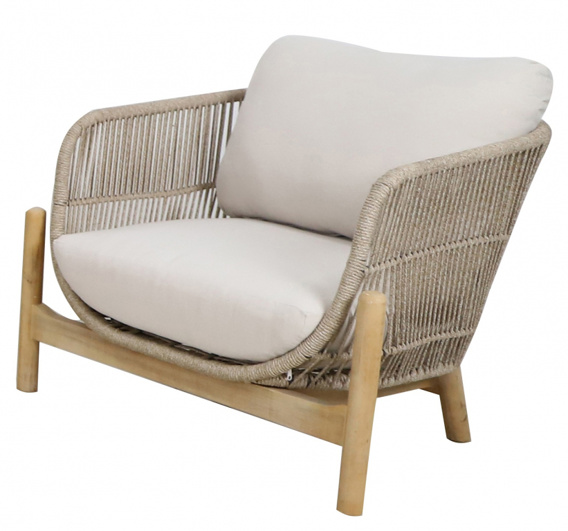 Talara — это современная коллекция садовой мебели из АКАЦИИ, выполненная в комбинации натурального веревочного плетения роуп, акации и светлых подушек. Крепкая алюминиевая рама оплетена синтетическим роупом, а мягкие подушки из ткани олефин обеспечивают комфорт и долговечность. Цвет натуральной твердой древесины с мелкой текстурой придает креслу приятный теплый вид.