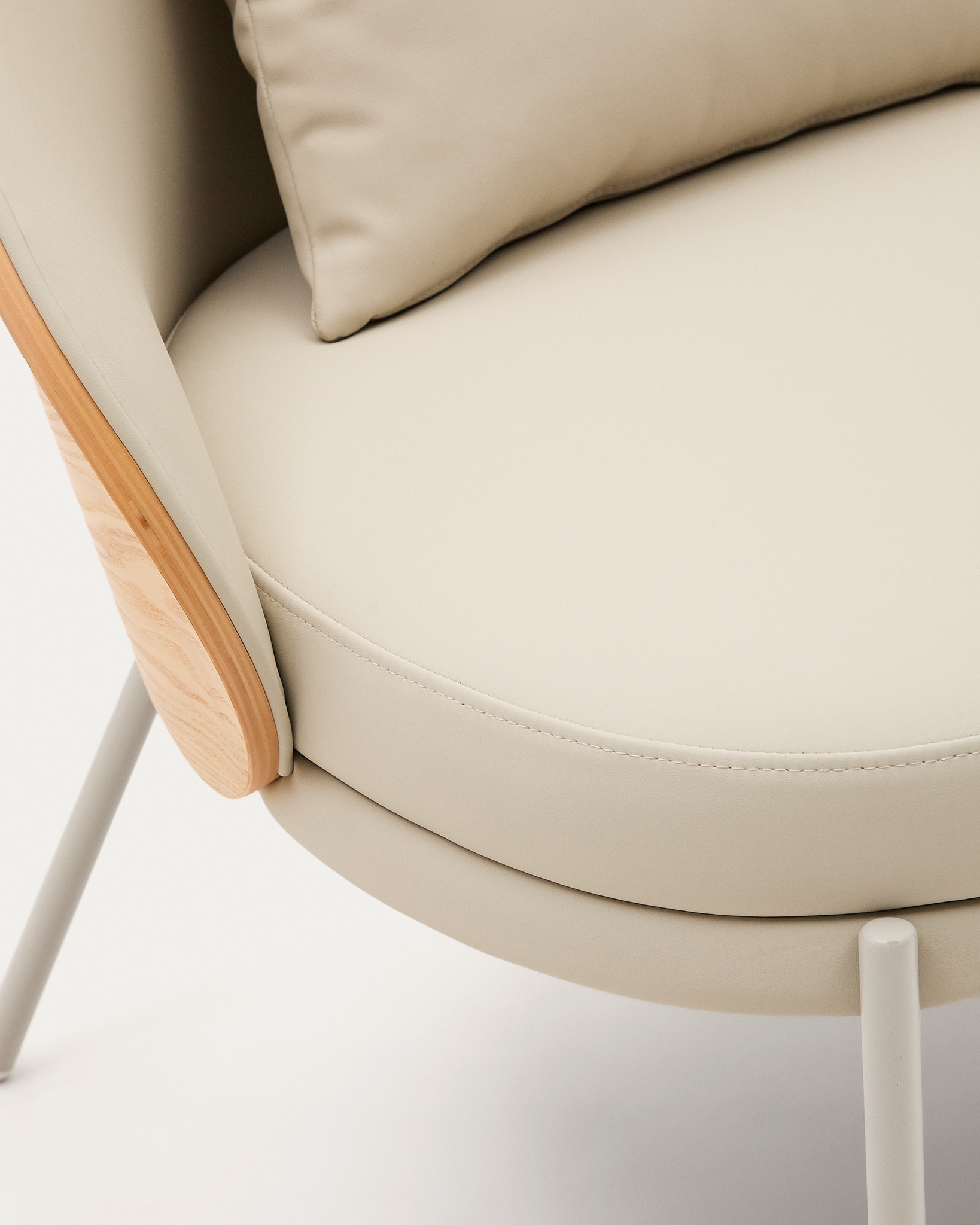 Кресло Eamy из бежевой экокожи, ясеневого шпона с натуральной отделкой и бежевого металла Испания La Forma - купить по цене 102 990 руб в интернет-магазине StoreForHome.ru
