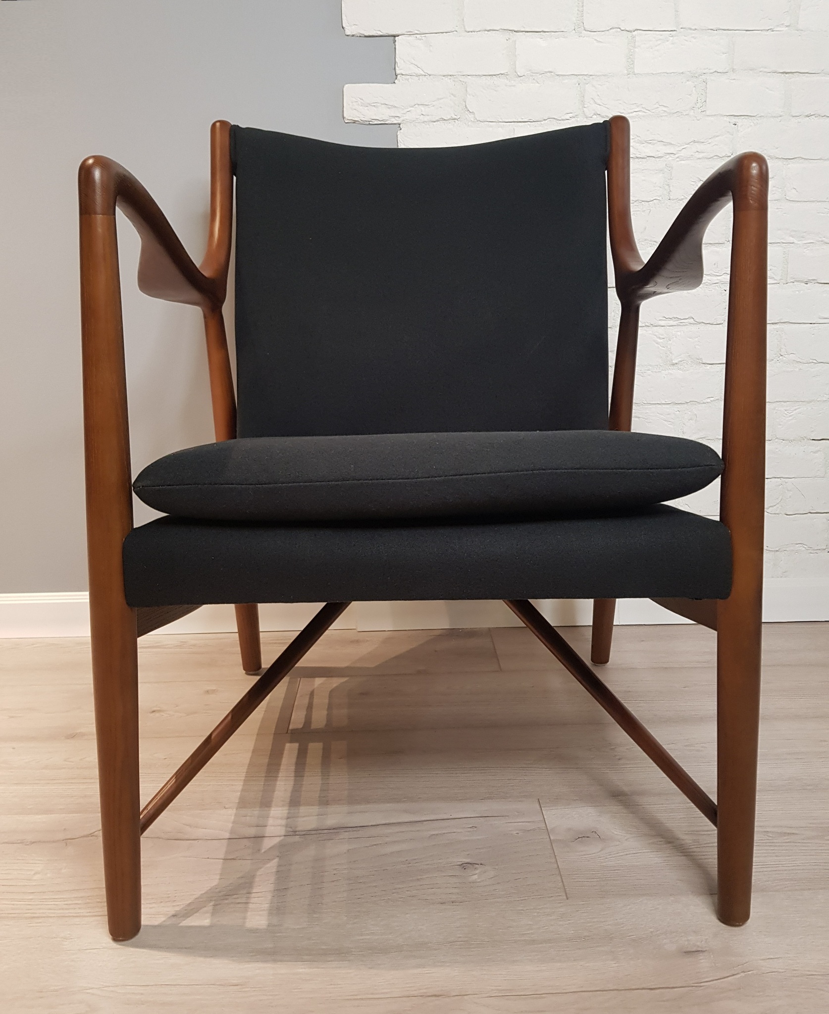 Кресло Finn Juhl Model 45 – это стильное сочетание классической элегантности и современного комфорта. Изготовленное из массива дерева, оно отличается особой прочностью и долговечностью. Благодаря использованию мягкого пенополиуретана кресло обеспечивает максимальную поддержку и удобство даже при длительном использовании. Черная ткань мелкой фактуры подчеркивает лаконичность дизайна модели, делая ее идеальным выбором как для дома, так и для офиса.
