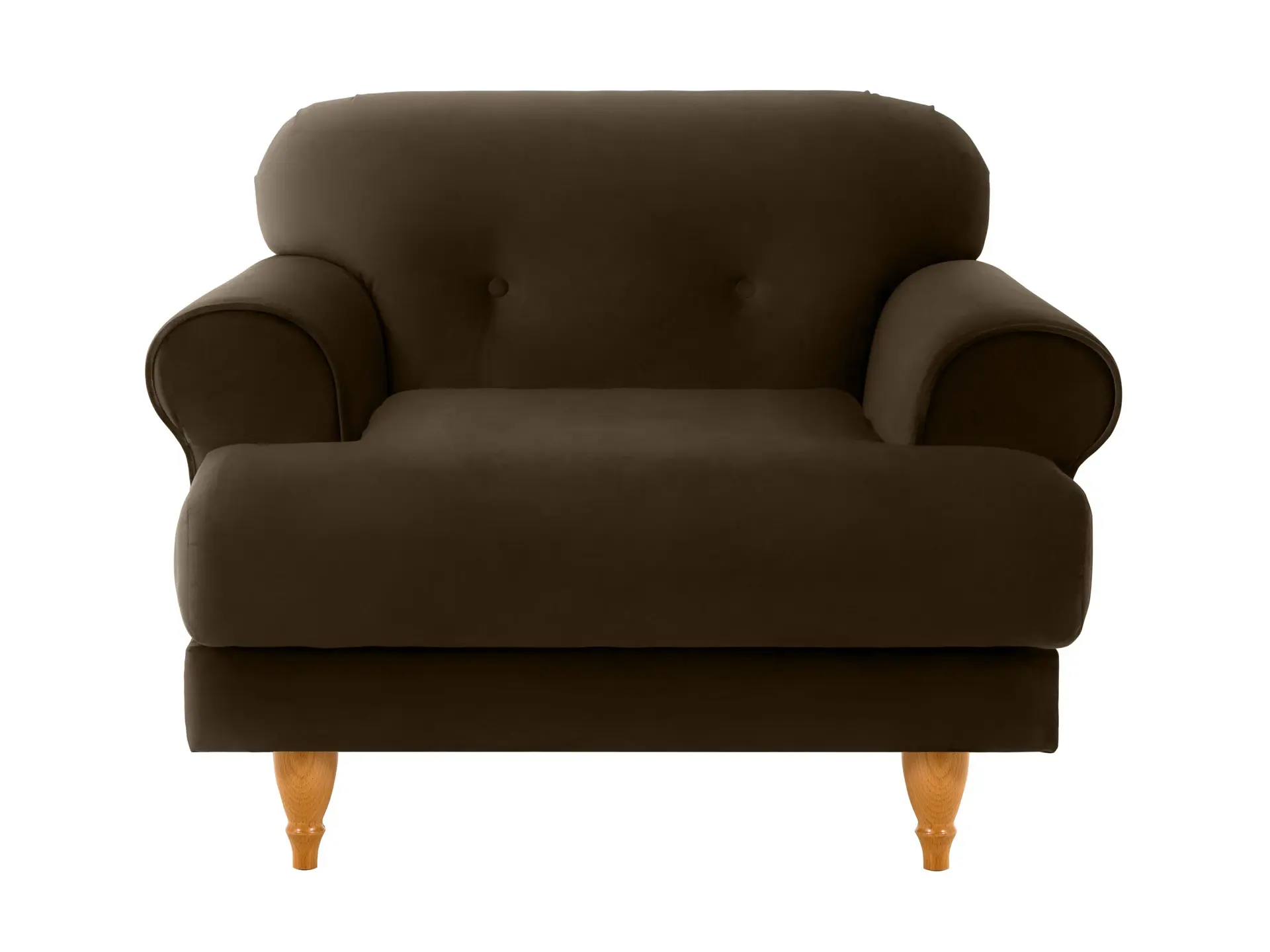Мягкое кресло Italia на деревянных ножках. Спинка симметрично декорирована пуговицами. Дизайн сочетает в себе черты классики, модерна и ретростиля. Резные деревянные ножки приподнимают кресло над полом, создавая просвет и наполняя помещение дополнительным воздухом. Что дает возможность визуально увеличить пространство. Невысокая спинка, закруглённые объёмные подлокотники, широкое сиденье создают эргономичную архитектуру кресла. Модель создана с учетом анатомических особенностей, поэтому в кресле Italia можно максимально расслабиться и ощутить настоящее умиротворение.|Надёжность и долговечность изделия обеспечивает комбинированный каркас из деревянного бруса, МДФ и фанеры. Упругость сиденья и спинки поддерживают пенополиуретан и синтепон. У этих материалов уникальная плотная текстура, сочетающая мягкость и прочность. Обивка из 100 % полиэстера не склонна к образованию пиллинга, затяжек, отлично поддается чистке. Цвет – на ваш выбор. Эффектное кресло Italia станет любимцем в доме, стоит только оказаться в его нежных объятиях.