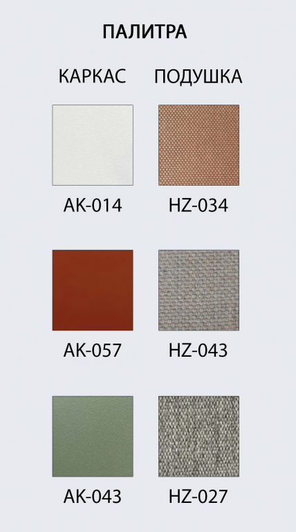 В комплект входит съемная подушка для сиденья из акрила светло-серого цвета (HZ-027). Наполнитель подушки: поролон плотностью 25 кг/м³.