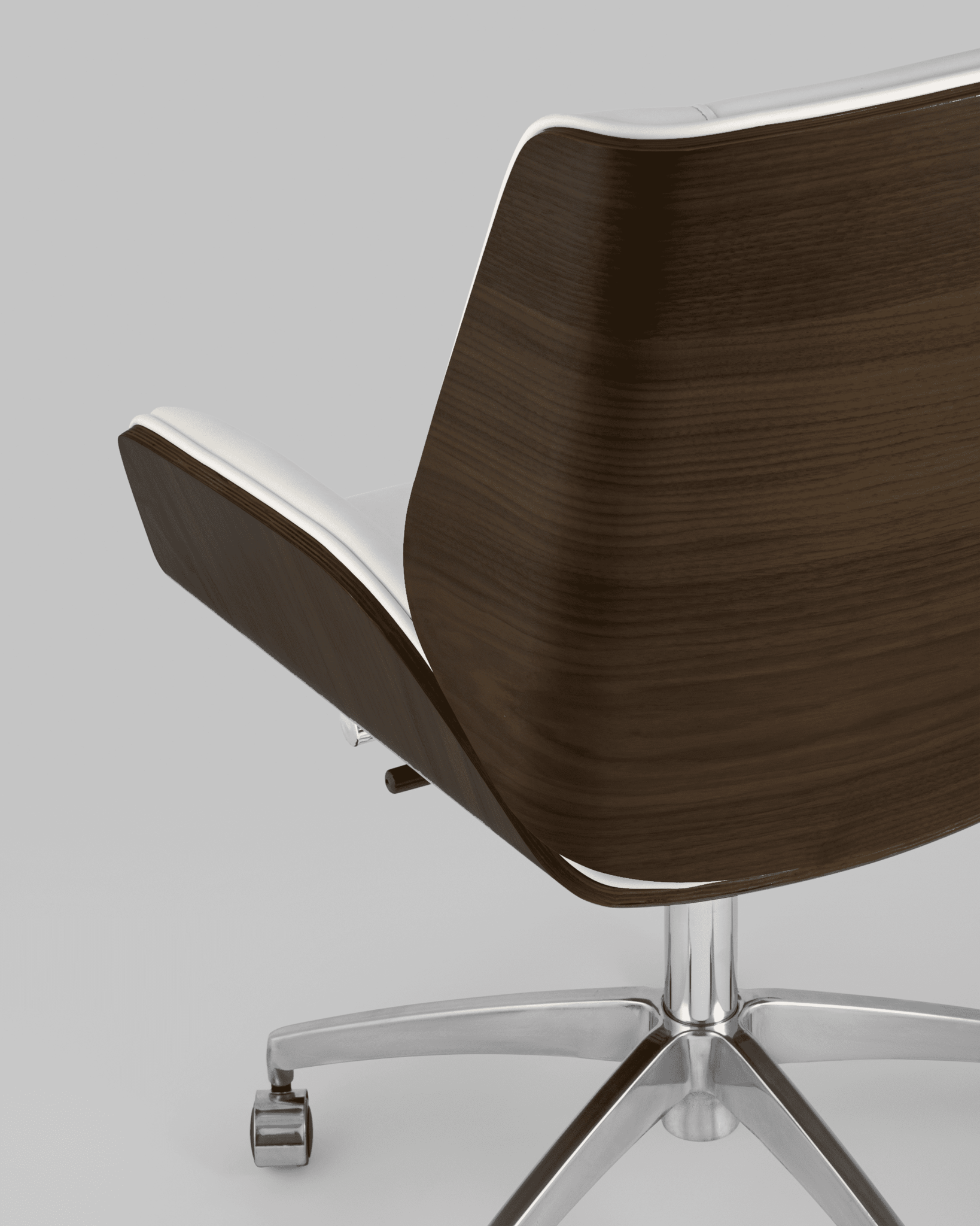 Современное и функциональное офисное кресло. Дизайнерская форма добавит помещению уюта и стиля, а вставки, декорированные под натуральное дерево, выглядят очень изысканно.
