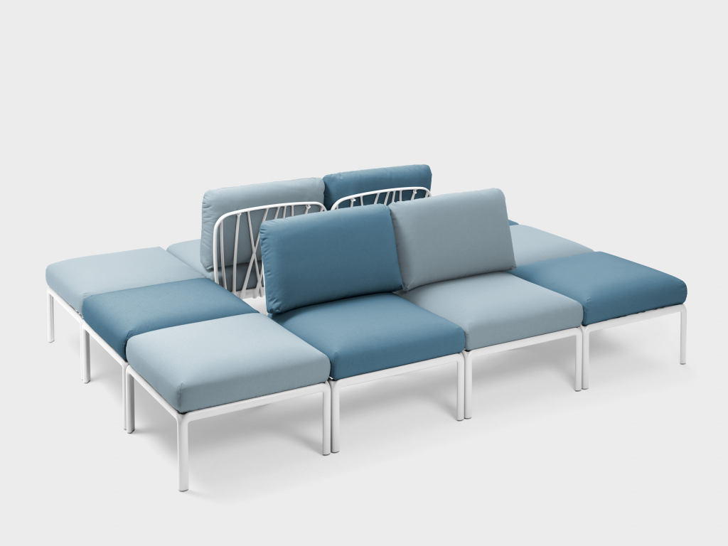 Дизайн: Raffaello Galiotto. На выставке Salone del Mobile 2018 в Милане Nardi представили новую коллекцию модульной мебели Komodo, куда входят различные модульные элементы, благодаря которым можно создавать различные комбинации. Модули Komodo выполнены из стеклопластика, имеют складные спинки и боковины, съемные подушки, благодаря чему можно составить диван любой длины, превратить отдельные модули в столики или пуфы. Ветвистая переплетенная конструкция вытекает из строгого геометрического дизайна, который также включает инновационную систему соединения между спинкой и сиденьем, осуществленную с помощью простого вращения. Последнее решение позволяет избежать непривлекательных стыков и открытых отверстий и поддерживает эстетическую гармонию плетеной конструкции на сиденье и спинке. Особенности: Кресло включает в себя: 1 сиденье, 1 спинку, 2 подлокотника, 1 подушку на сиденье, 1 подушку на спинку. Модель выполнена из полностью перерабатываемого материала - стеклопластика (полипропилен, стекловолокно) - прочного, нетоксичного и антистатичного, устойчивого к любой погоде и средам с повышенной соленостью. Сиденья можно закрепить с одной стороны, а спинки и подлокотники можно прикрепить с любой стороны. Возможные цвета каркаса: белый (bianco), антрацит (antracite), тортора (tortora), агава (agave). Возможные цвета подушек из акрила: серый (grigio), розовый (rosa quarzo). Возможные цвета подушек из ткани Sunbrella: синий (adriatic), лед (ghiaccio), авокадо (avocado), джунгли (giungla), холст (canvas). Возможные цвета подушек из ткани TECH: панама (panama). Матовая отделка, нескользящие ножки. Изделие сертифицировано CATAS. Открыть технические характеристики. Открыть инструкцию по сборке. Можно докупать модули и корректировать размеры мебели под необходимые размеры. Элементы серии Кomodo комбинируются между собой в любой последовательности, создавая индивидуальные решения для Вашего интерьера.