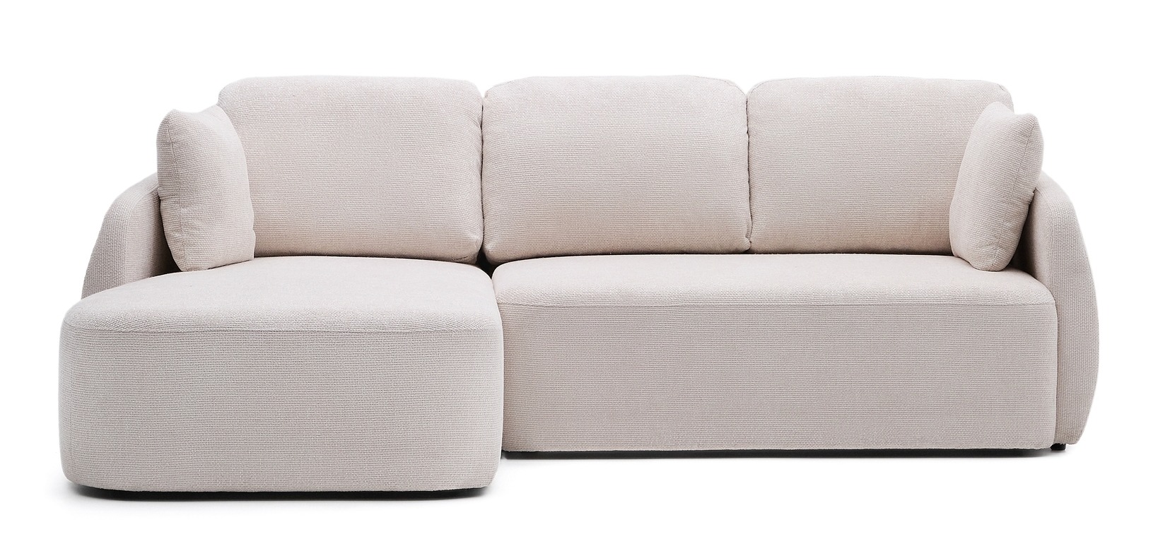 Диван-кровать Laira с обивкой из высококачественного шенилла (крупная структура, мягкое ощущение, устойчивость к истиранию). Система трансформации Y-open — синхронизированный механизм раскрытия, позволяющий быстро превратить диван в удобную кровать размером 150×230 см (в самой широкой точке). После раскрытия используется как непрерывный шезлонг. Пена плотностью 28 кг/м³ средней жесткости — баланс комфорта и поддержки. Подушки спинки наполнены волокнами и измельченной пеной. Внутренняя структура — массив сосны (FSC 100%) и фанера (FSC Mix Credit).