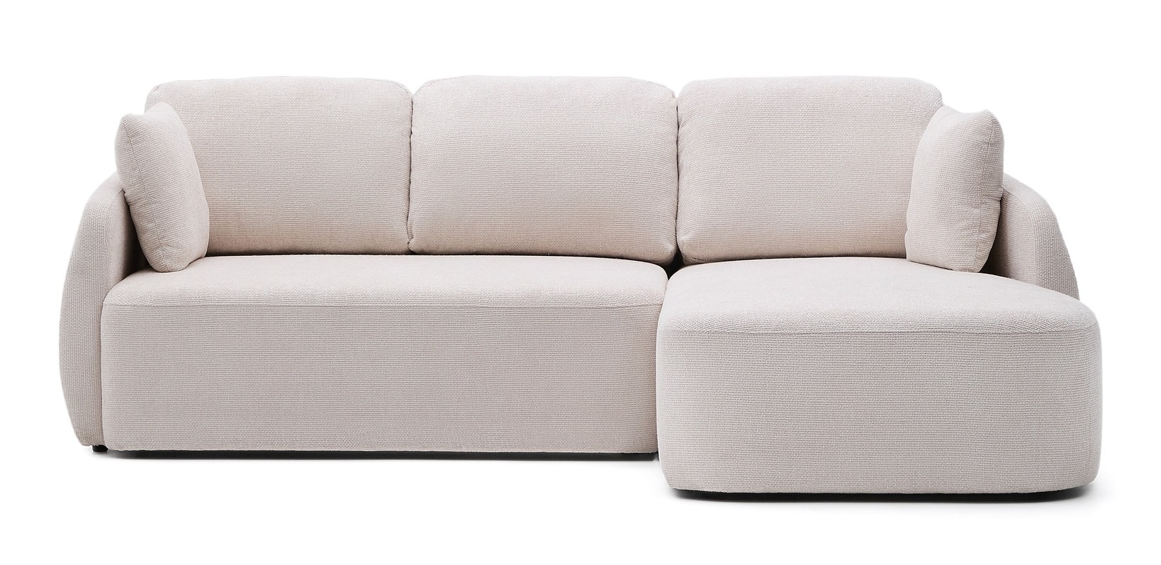 Диван-кровать Laira с обивкой из высококачественного шенилла (крупная структура, мягкое ощущение, устойчивость к истиранию). Система трансформации Y-open — синхронизированный механизм раскрытия, позволяющий быстро превратить диван в удобную кровать размером 150×230 см (в самой широкой точке). После раскрытия используется как непрерывный шезлонг. Пена плотностью 28 кг/м³ средней жесткости — баланс комфорта и поддержки. Подушки спинки наполнены волокнами и измельченной пеной. Внутренняя структура — массив сосны (FSC 100%) и фанера (FSC Mix Credit).