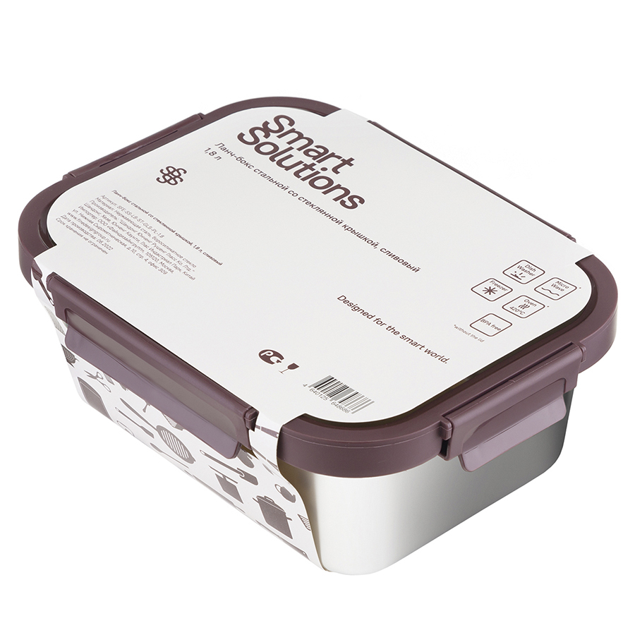 Ланч-бокс стальной со стеклянной крышкой, 1,8 л, сливовый - купить по цене 1 990 руб в интернет-магазине StoreForHome.ru