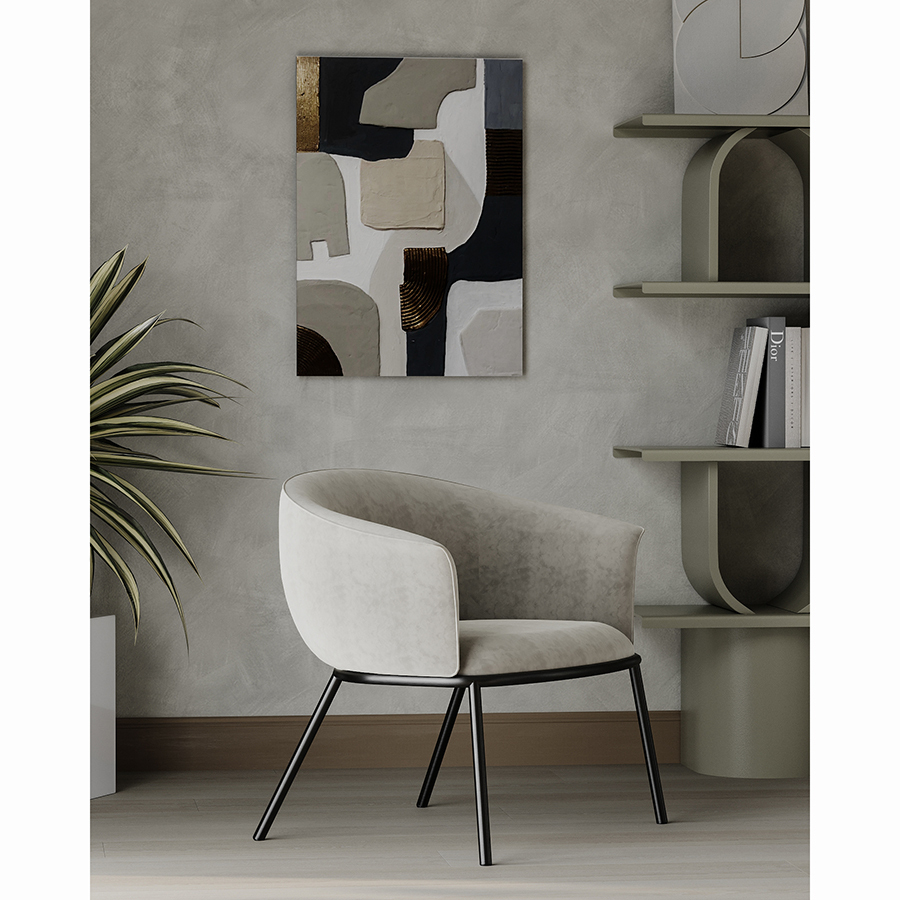 Лаунж-кресло Paal удачно сочетает в себе элементы современного и классического стилей. Изюминку модели придает сплошная спинка, плавно переходящая в подлокотники, и буклированная обивка. Такой дизайн обеспечивает не только оригинальный вид, а также комфорт при сидении и приятные тактильные ощущения. Светлая мебель с лаконичным силуэтом идеально вписывается в интерьер гостиной, рабочего кабинета или спальни, оформленных в скандинавском стиле, лофт, эклектика, фьюжн, неоклассика и др. Материалы: 100% полиэстер, фанера, железо, пенополиуретан. Размеры: 74х70х65 см. Высота сиденья: 41 см. Ширина сиденья: 53 см. Глубина сиденья: 47 см. Высота спинки: 33 см. Ширина спинки: 53 см. Максимальная нагрузка: 120 кг. Цвет: серый. Рекомендуется регулярно пылесосить мебель с помощью специальной насадки. Загрязнения можно удалять мягкой губкой или салфеткой с мыльным раствором воды.