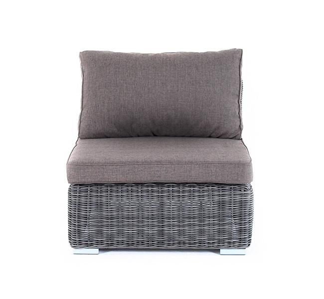 «Лунго» прямой модуль из круглого искусственного ротанга, выполнен из алюминиевого каркаса, который оплетен вручную ротангом графитового цвета. В комплектацию входят подушки из полиэстера, пропитанные влагоотталкивающим составом. Размеры: 740×860×650 мм.