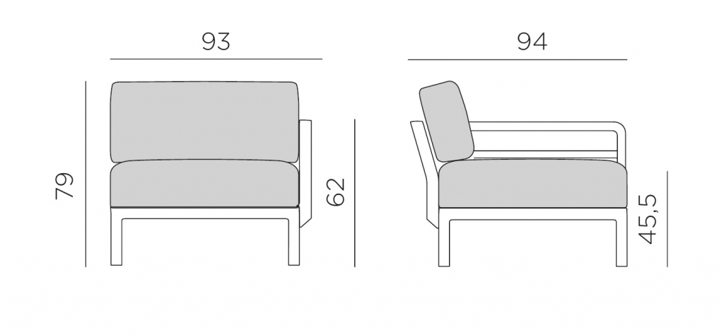 Модуль правый/левый пластиковый с подушками Maximo Elemento Terminale DX/SX