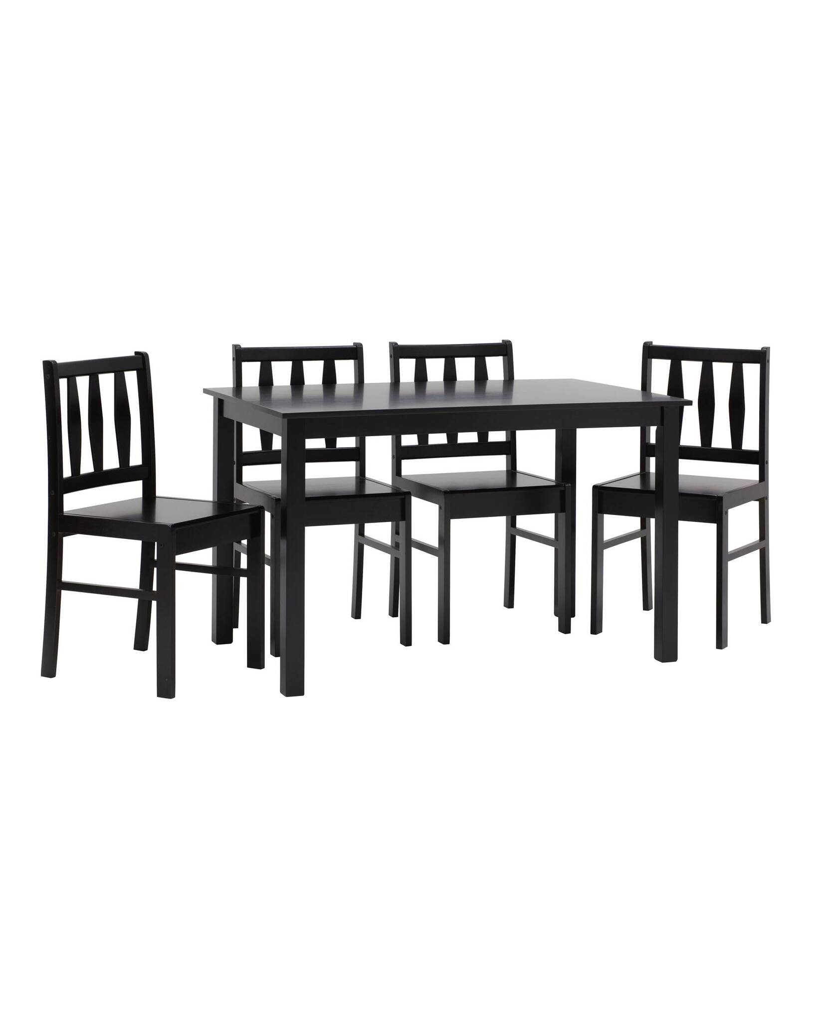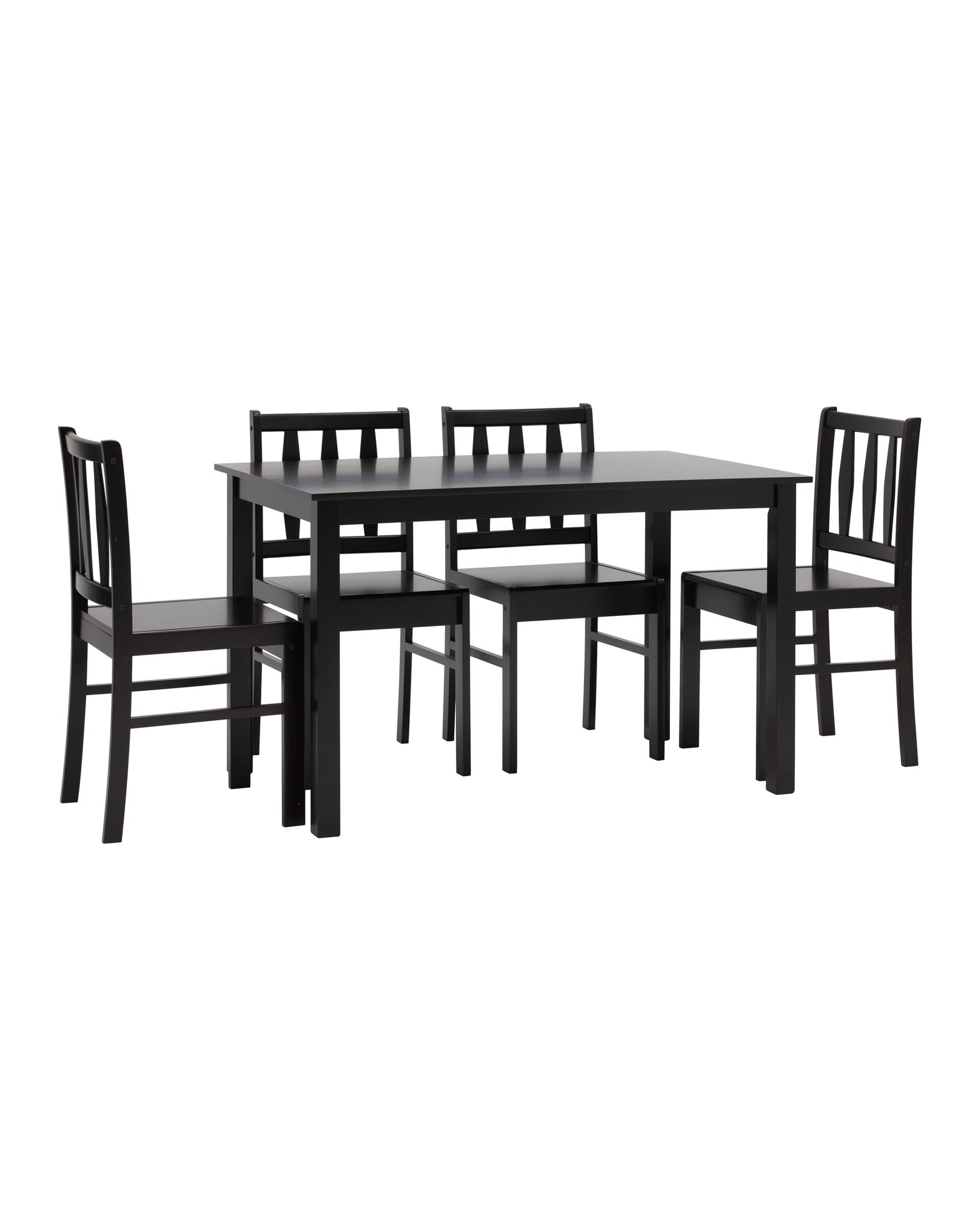 Стулья и ножки стола выполнены из массива дерева гевеи, которое отличается высокой влагостойкостью, устойчивостью к изменениям температур и прочностью. Цвет стульев и стола - темно-коричневый, классический вариант для любой современной кухни.