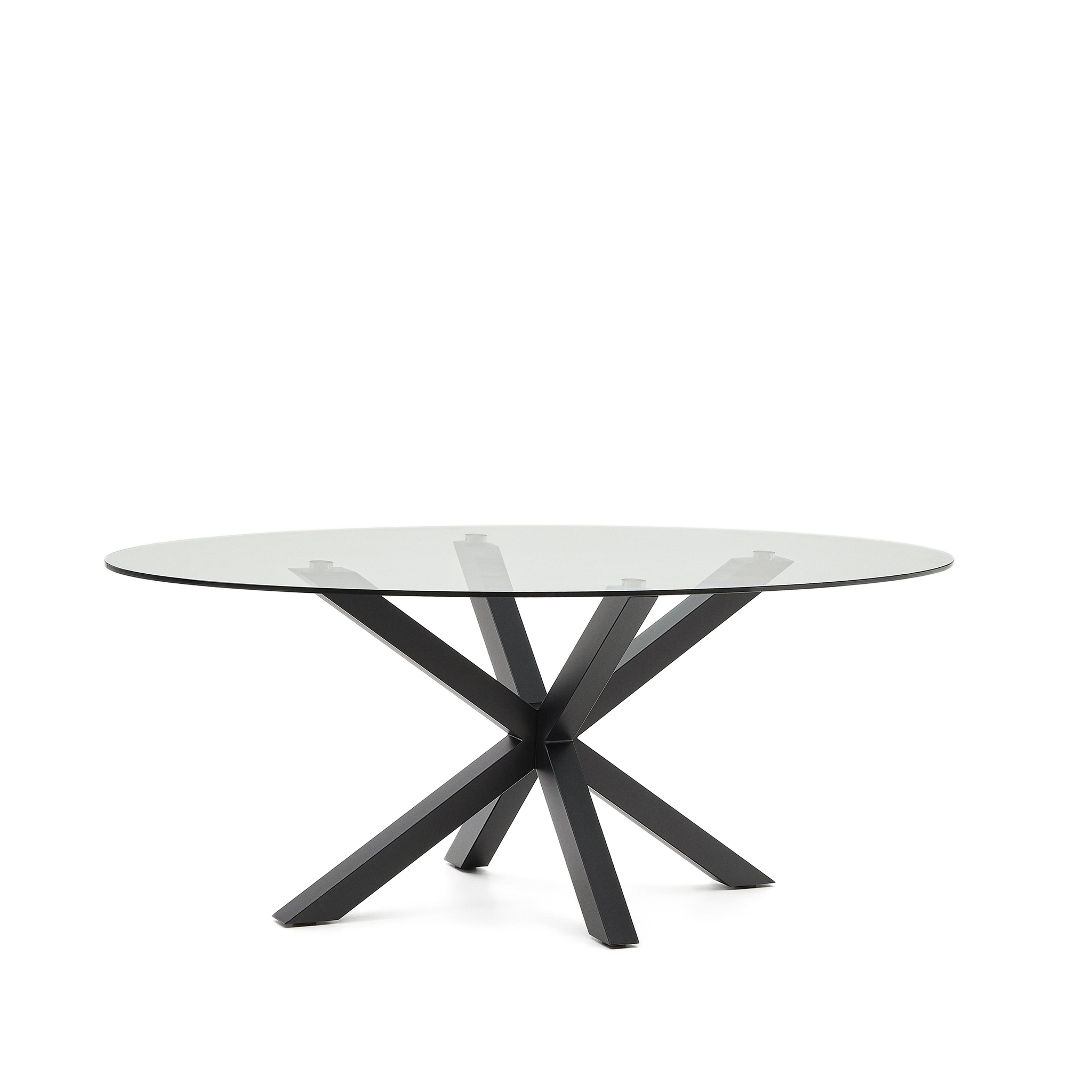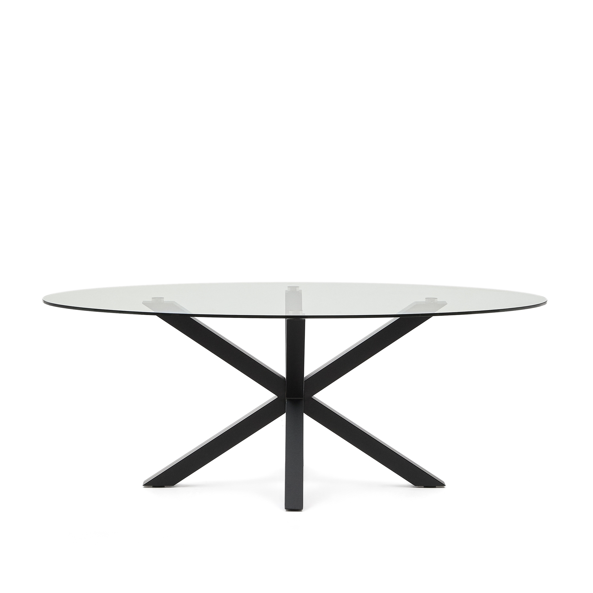 Овальный стол ARYA Argo из стекла, на стальных ножках с черной отделкой 200x100