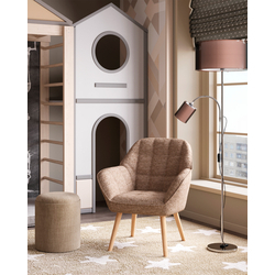 Мягкая обивка выполнена из рогожки - высокопрочный, устойчивый к истиранию и простой в уходе материал, отлично сочетается со вставками из дерева. Прочный каркас из фанеры не утяжеляет изделие и выдерживает нагрузку до 150 кг. Небольшие подпятники в основании пуфа защищают напольные покрытия от царапин и предотвращают скольжение.
