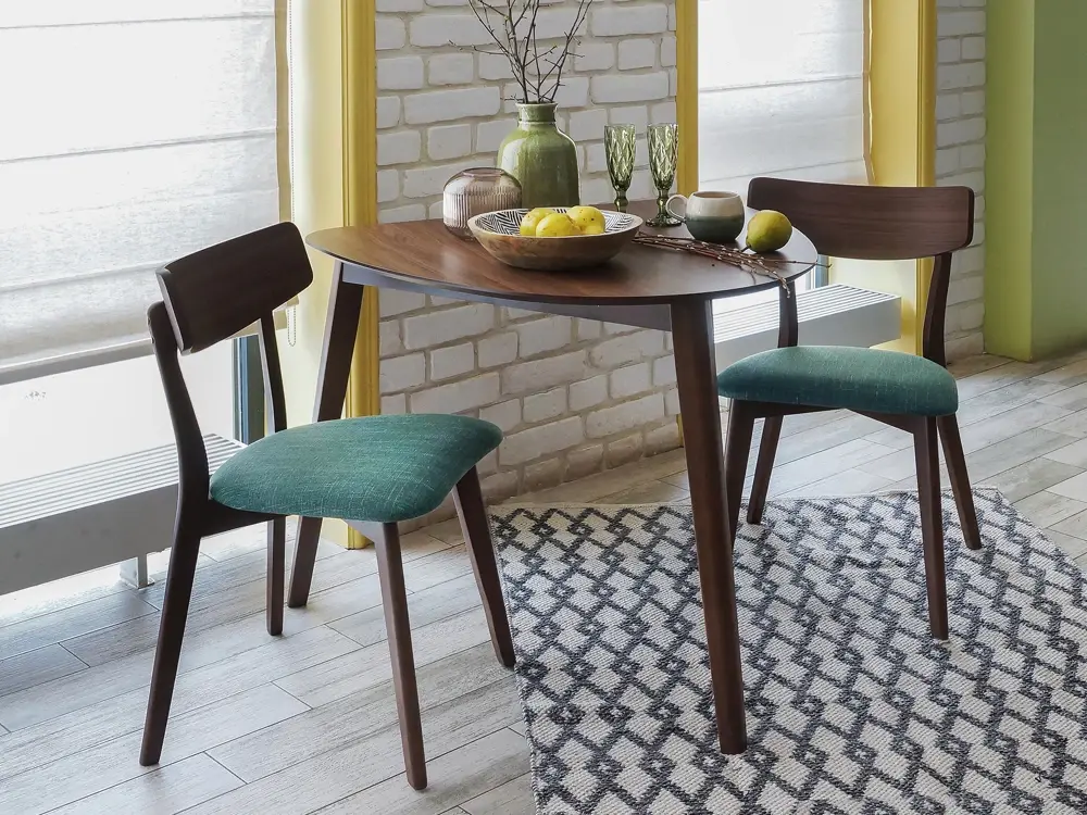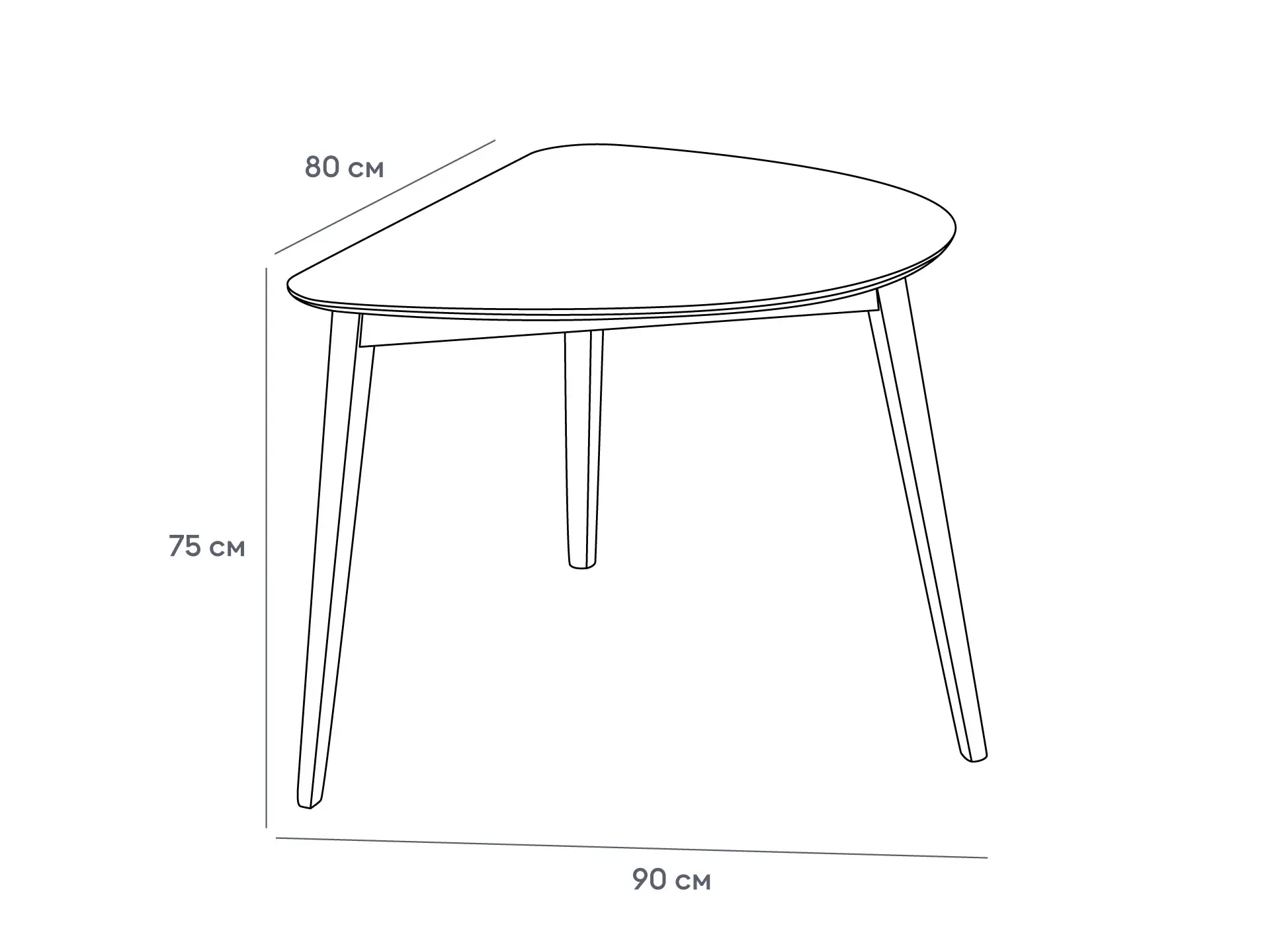 Также вариант треугольного стола стоит рассмотреть тем, кто подбирает мебель для маленькой кухни, террасы или балкона. Стол Oxville позволит значительно сэкономить место. Габаритные размеры: ширина 80см, длина 90 см. Благодаря плавным линиям столешницы и отсутствию острых углов стол безопасен. Данное обстоятельство особенно важно, когда в семье есть маленькие дети.
