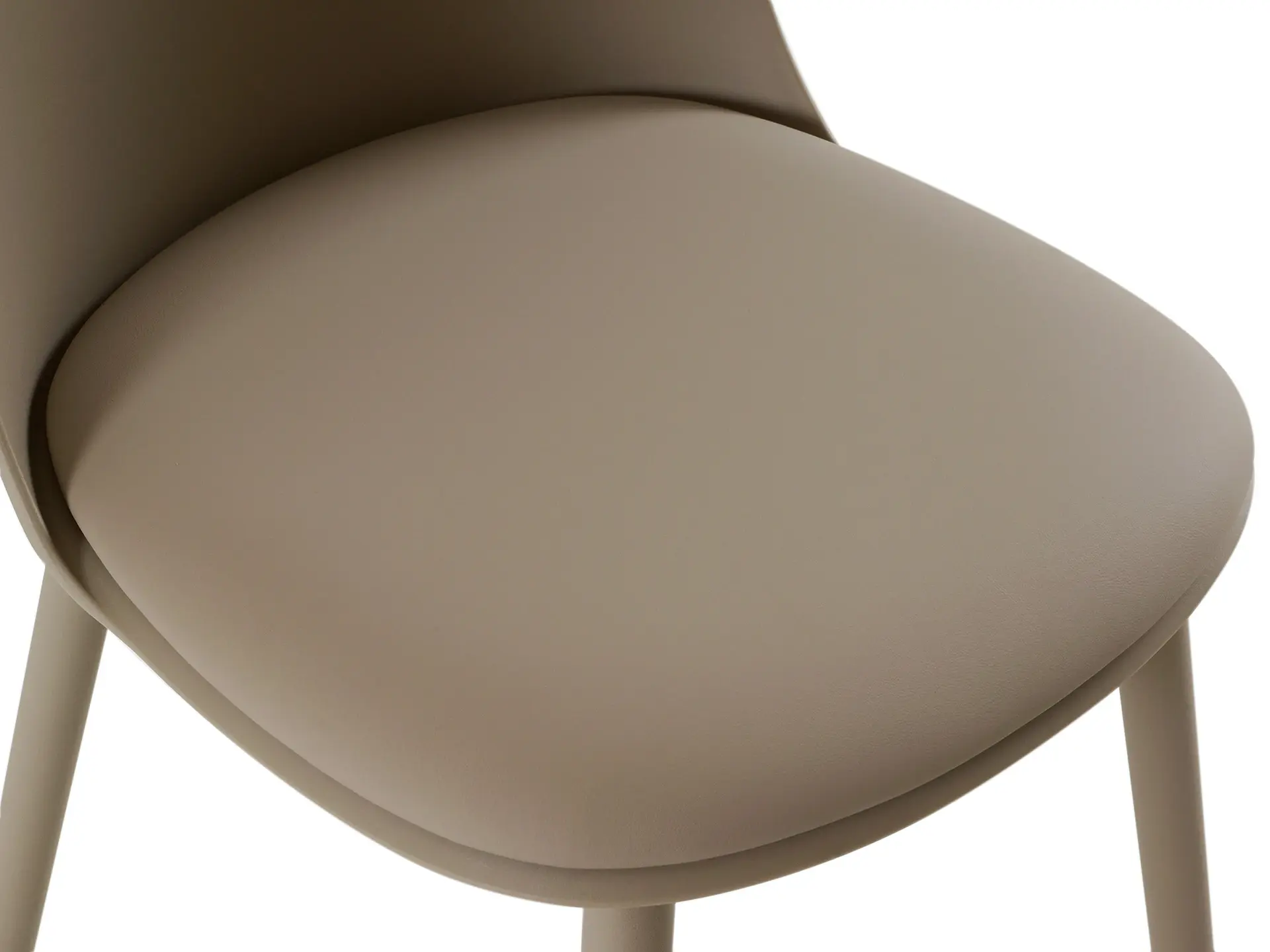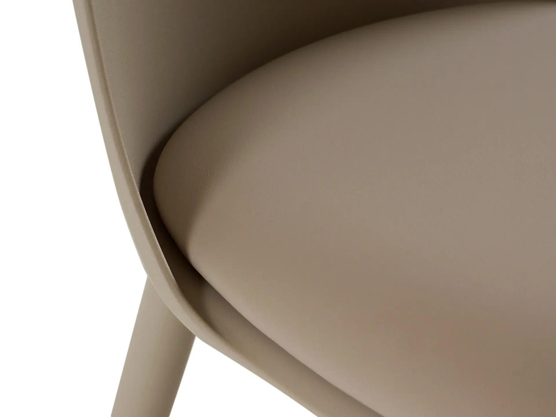 Материал обивки сидения - экокожа, материал спинки и ножек - пластик. Наличие подпятников, предохраняющих от царапания пола.