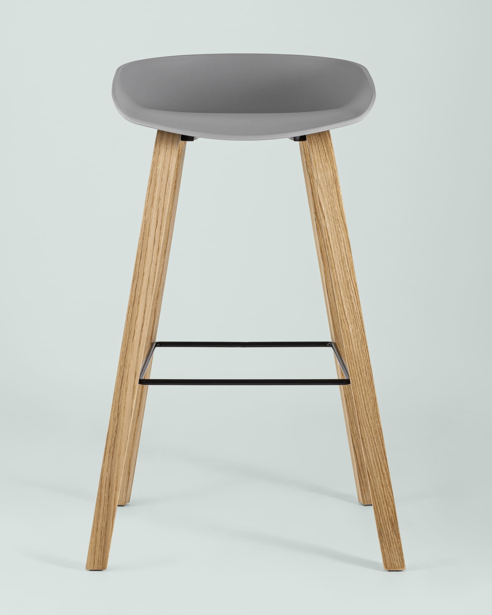 В дизайне модели «Либра» используется сочетание серого пластика и естественного оттенка натурального дерева – опоясывающая ножки опорная планка в тон сиденью уравновешивает цветовую комбинацию и подчеркивает модные геометрические формы стула. Высота соответствует стойке стандартной высоты.